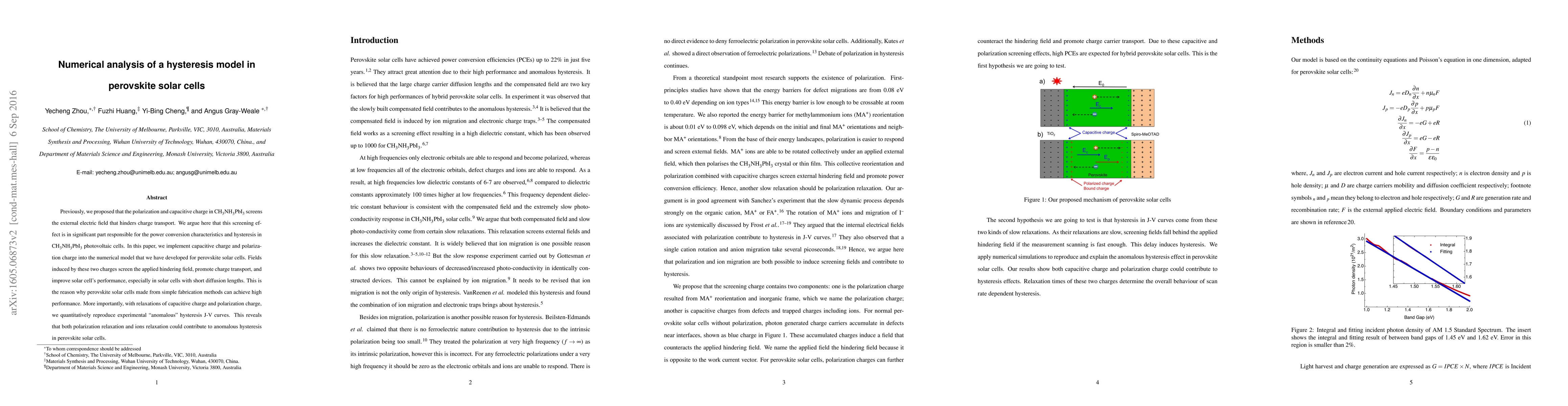 Previously, we proposed that the polarization and capacitive charge in \ce{CH3NH3PbI3} screens the external electric field that hinders charge transport. We argue here that this screening effect is in significant part responsible for the power conversion characteristics and hysteresis in \ce{CH3NH3PbI3} photovoltaic cells. In this paper, we implement capacitive charge and polarization charge into the numerical model that we have developed for perovskite solar cells. Fields induced by these two charges screen the applied hindering field, promote charge transport, and improve solar cell's performance, especially in solar cells with short diffusion lengths. This is the reason why perovskite solar cells made from simple fabrication methods can achieve high performance. More importantly, with relaxations of capacitive charge and polarization charge, we quantitatively reproduce experimental "anomalous" hysteresis J-V curves. This reveals that both polarization relaxation and ions relaxation could contribute to anomalous hysteresis in perovskite solar cells.