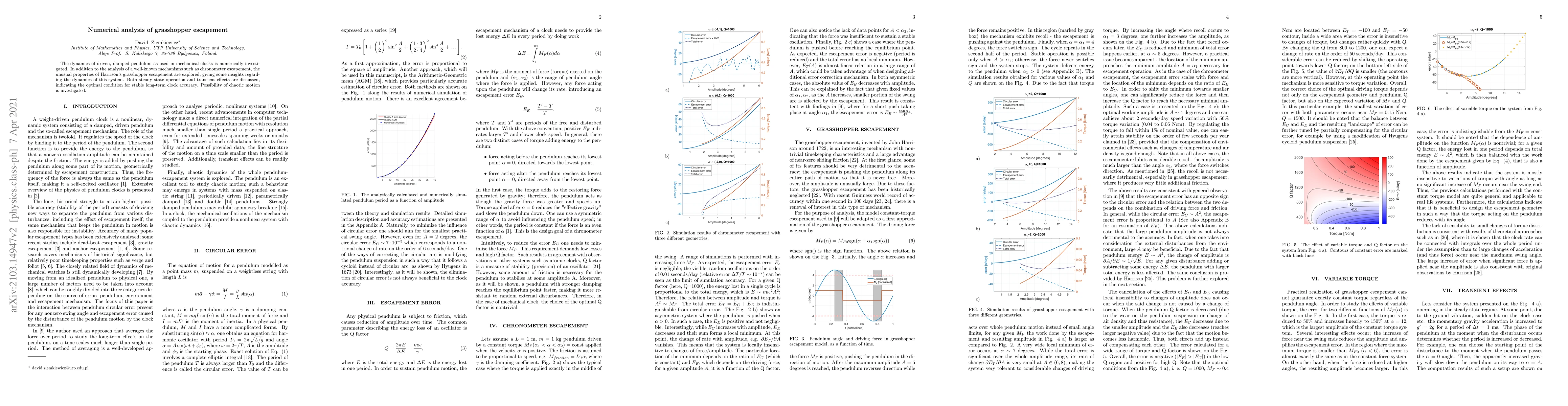 The paper presents a numerical analysis framework for understanding the dynamics of grasshopper escapements, including steady-state and transient behaviors, which can guide the design of more accurate mechanical clocks.