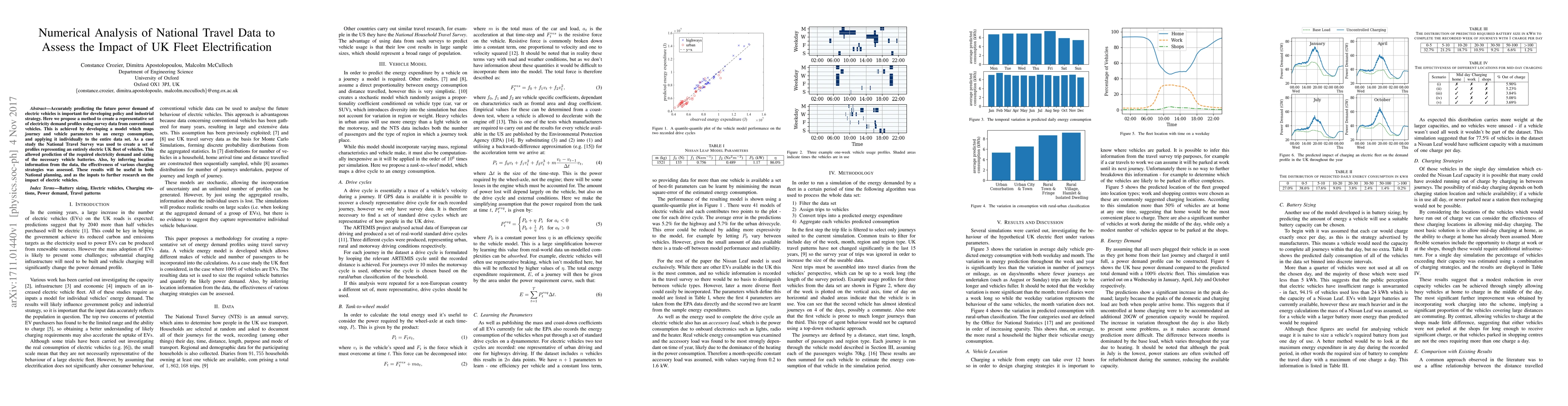 Accurately predicting the future power demand of electric vehicles is important for developing policy and industrial strategy. Here we propose a method to create a representative set of electricity demand profiles using survey data from conventional vehicles. This is achieved by developing a model which maps journey and vehicle parameters to an energy consumption, and applying it individually to the entire data set. As a case study the National Travel Survey was used to create a set of profiles representing an entirely electric UK fleet of vehicles. This allowed prediction of the required electricity demand and sizing of the necessary vehicle batteries. Also, by inferring location information from the data, the effectiveness of various charging strategies was assessed. These results will be useful in both National planning, and as the inputs to further research on the impact of electric vehicles.