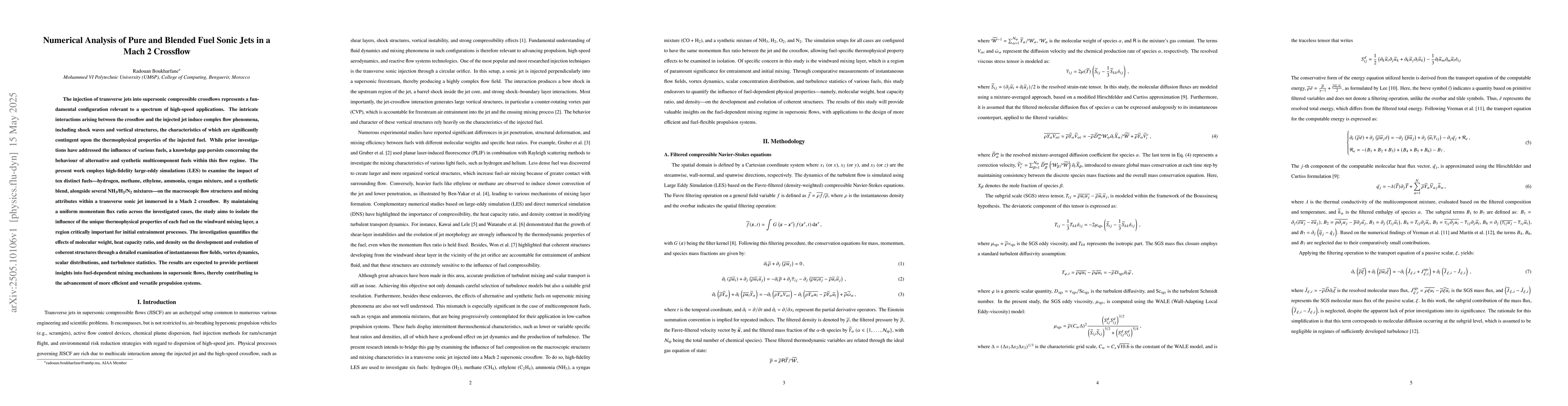 The paper presents a comprehensive numerical analysis of various pure and blended fuels in a Mach 2 crossflow using LES, focusing on the influence of thermophysical properties on mixing processes.