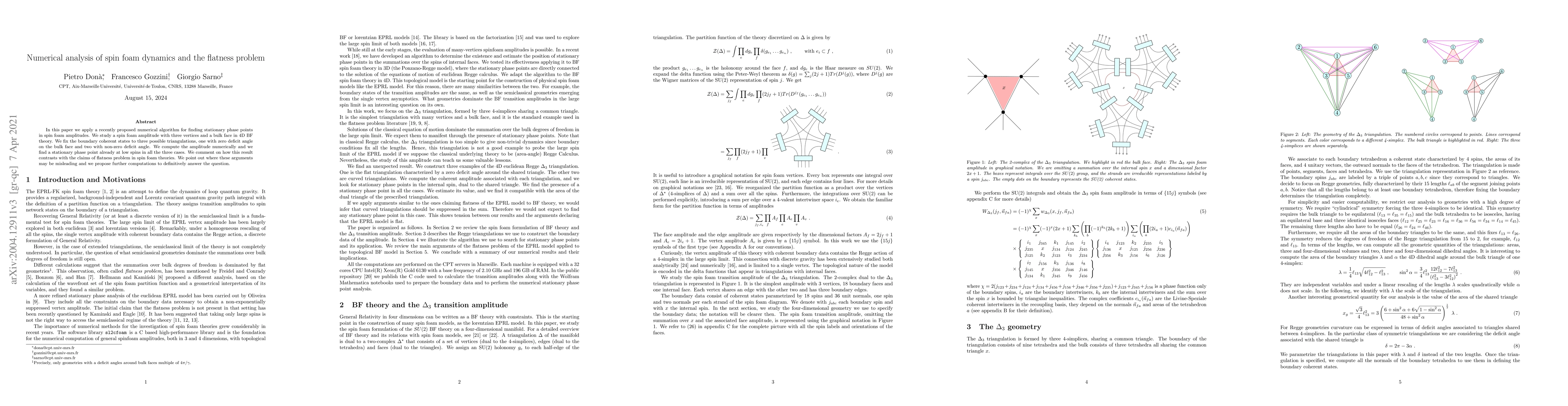 In this paper, we apply a recently proposed numerical algorithm for finding stationary phase points in spin foam amplitudes. We study a spin foam amplitude with three vertices and a bulk face in 4d BF theory. We fix the boundary coherent states to three possible triangulations, one with zero deficit angle on the bulk face and two with non-zero deficit angle. We compute the amplitude numerically and we find a stationary phase point already at low spins in all the three cases. We comment on how this result contrasts with the claims of flatness problem in spin foam theories. We point out where these arguments may be misleading and we propose further computations to definitively answer the question.