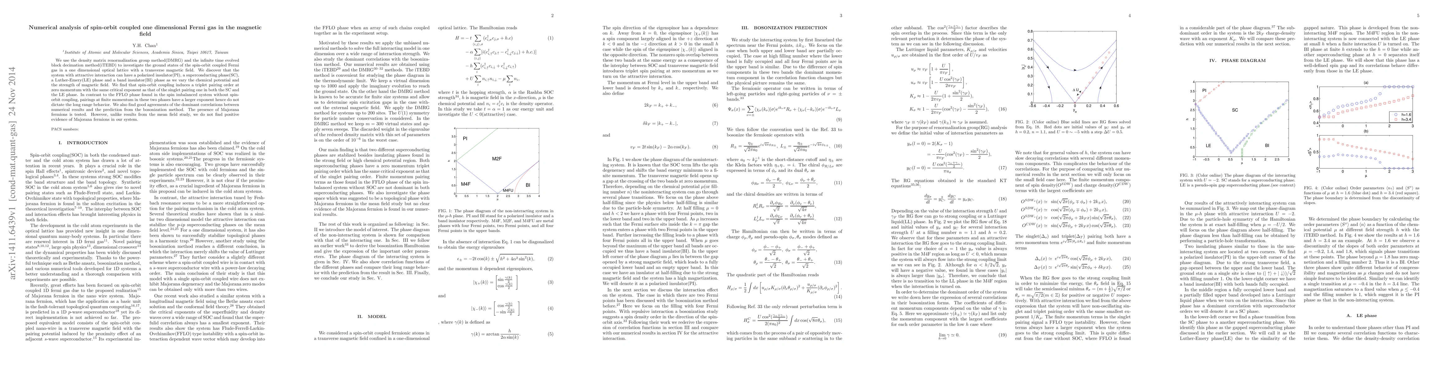 Researchers used numerical methods to study a one-dimensional Fermi gas in a magnetic field, finding phases of insulators and superconductors with unique properties, including triplet pairing order and Majorana fermion presence.