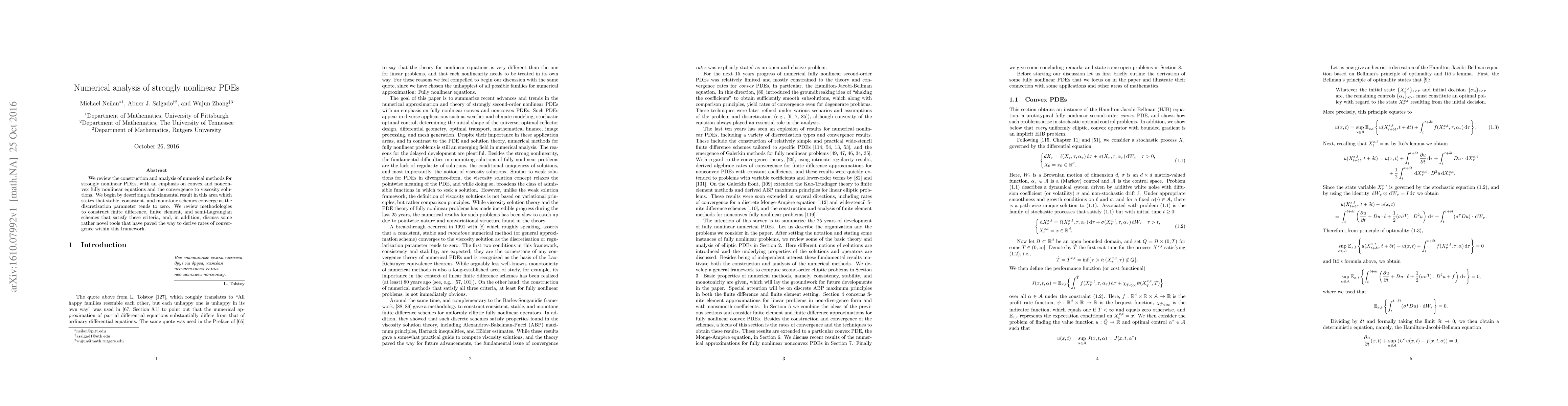 We review the construction and analysis of numerical methods for strongly nonlinear PDEs, with an emphasis on convex and nonconvex fully nonlinear equations and the convergence to viscosity solutions. We begin by describing a fundamental result in this area which states that stable, consistent, and monotone schemes converge as the discretization parameter tends to zero. We review methodologies to construct finite difference, finite element, and semi-Lagrangian schemes that satisfy these criteria, and, in addition, discuss some rather novel tools that have paved the way to derive rates of convergence within this framework.