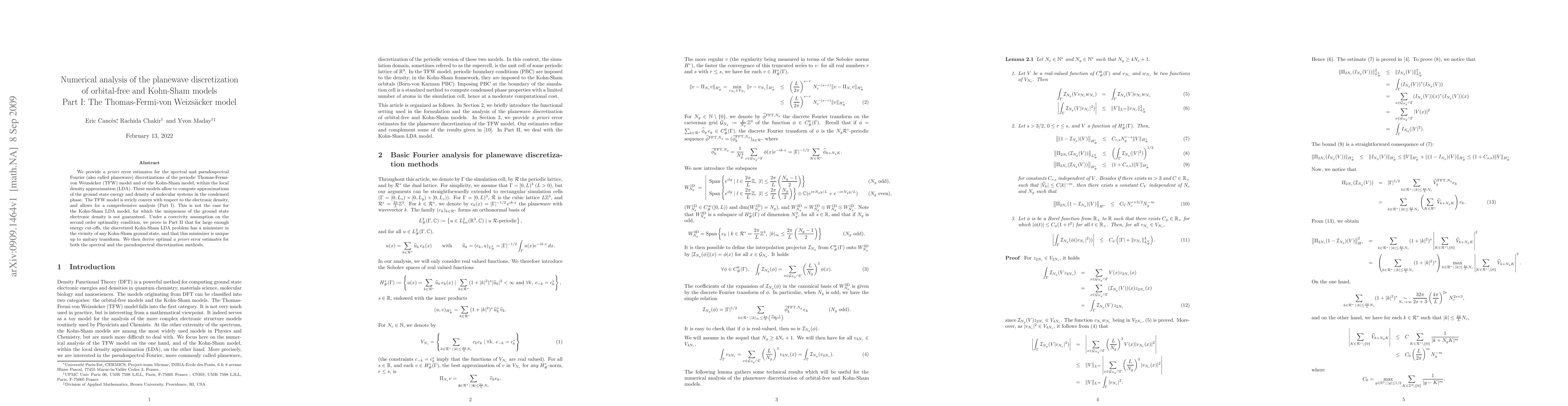 We provide {\it a priori} error estimates for the spectral and pseudospectral Fourier (also called planewave) discretizations of the periodic Thomas-Fermi-von Weizs\"acker (TFW) model and of the Kohn-Sham model, within the local density approximation (LDA). These models allow to compute approximations of the ground state energy and density of molecular systems in the condensed phase. The TFW model is stricly convex with respect to the electronic density, and allows for a comprehensive analysis (Part I). This is not the case for the Kohn-Sham LDA model, for which the uniqueness of the ground state electronic density is not guaranteed. Under a coercivity assumption on the second order optimality condition, we prove in Part II that for large enough energy cut-offs, the discretized Kohn-Sham LDA problem has a minimizer in the vicinity of any Kohn-Sham ground state, and that this minimizer is unique up to unitary transform. We then derive optimal {\it a priori} error estimates for both the spectral and the pseudospectral discretization methods.