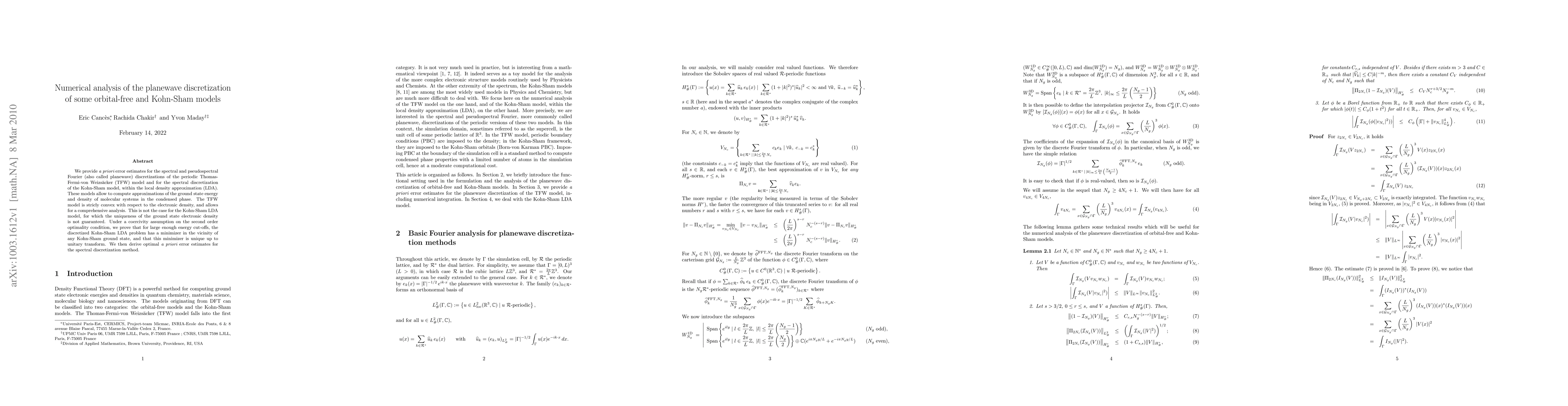 This paper provides a priori error estimates for planewave discretizations of the Thomas-Fermi-von Weizsäcker (TFW) and Kohn-Sham models within the local density approximation. It proves the existence and uniqueness of a minimizer for the Kohn-Sham model under certain conditions and derives optimal error estimates for the spectral discretization method.