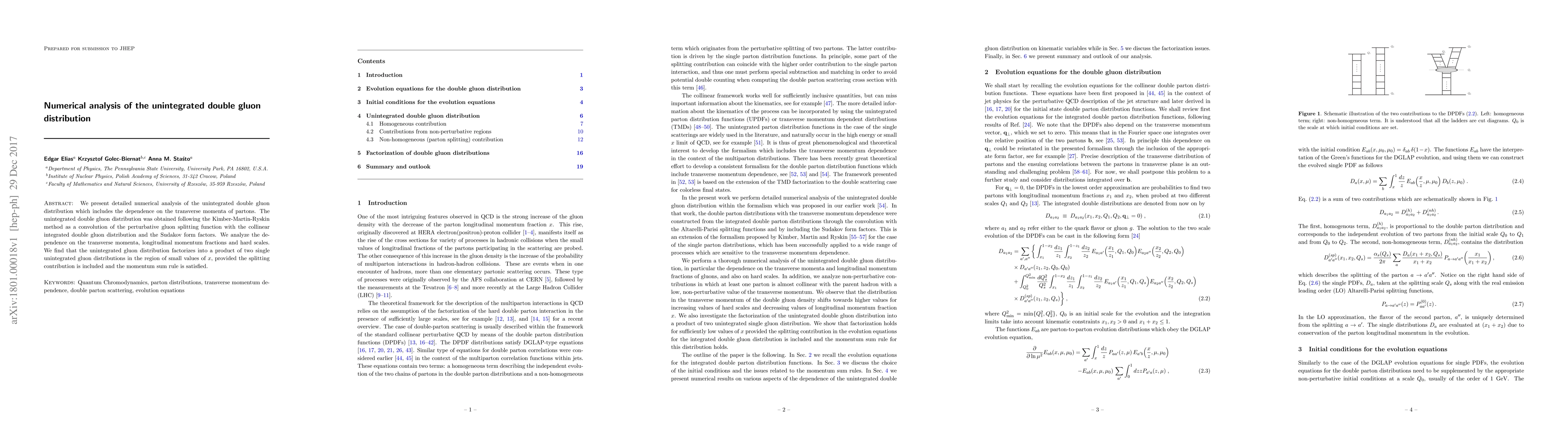 Researchers analyzed the unintegrated double gluon distribution, finding it factorizes into a product of two single distributions in regions with small x-values, provided momentum sum rule is satisfied.