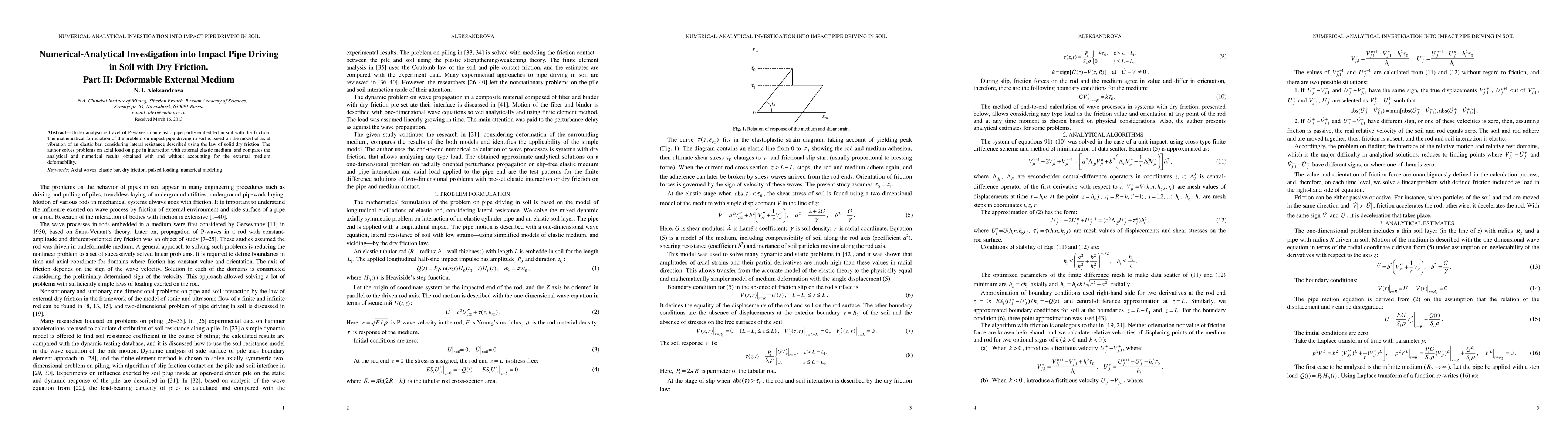 Researchers investigated how friction in soil affects pipe movement using a combination of analytical and numerical methods. They found that accounting for the deformability of the external medium improved their results.