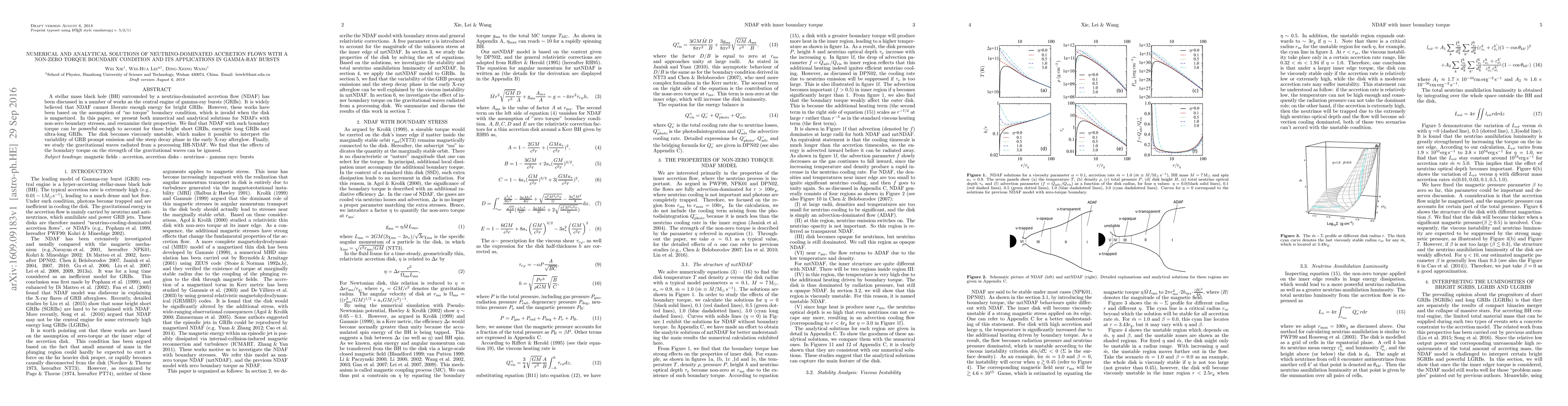 This paper presents both numerical and analytical solutions for neutrino-dominated accretion flows (NDAF) with non-zero torque boundary conditions, showing they can generate sufficient energy for bright gamma-ray bursts (GRBs). The study also explores the variability of GRB prompt emission and early X-ray afterglow, and finds negligible effects of boundary torque on gravitational wave strength.