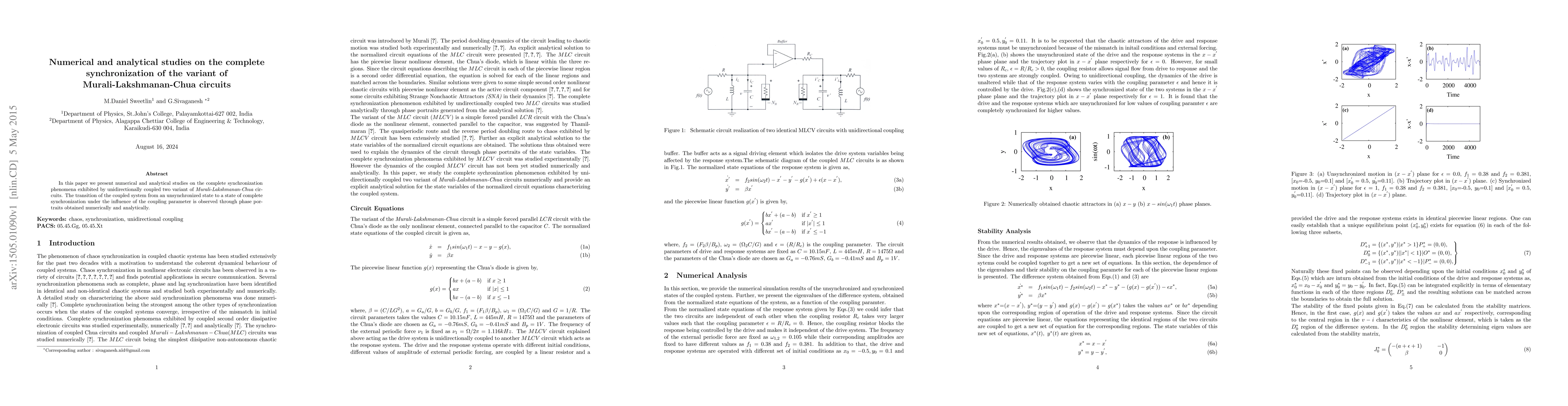 In this paper we present numerical and analytical studies on the complete synchronization phenomena exhibited by unidirectionally coupled two variant of Murali-Lakshmanan-Chua circuits. The transition of the coupled system from an unsynchronized state to a state of complete synchronization under the influence of the coupling parameter is observed through phase portraits obtained numerically and analytically.