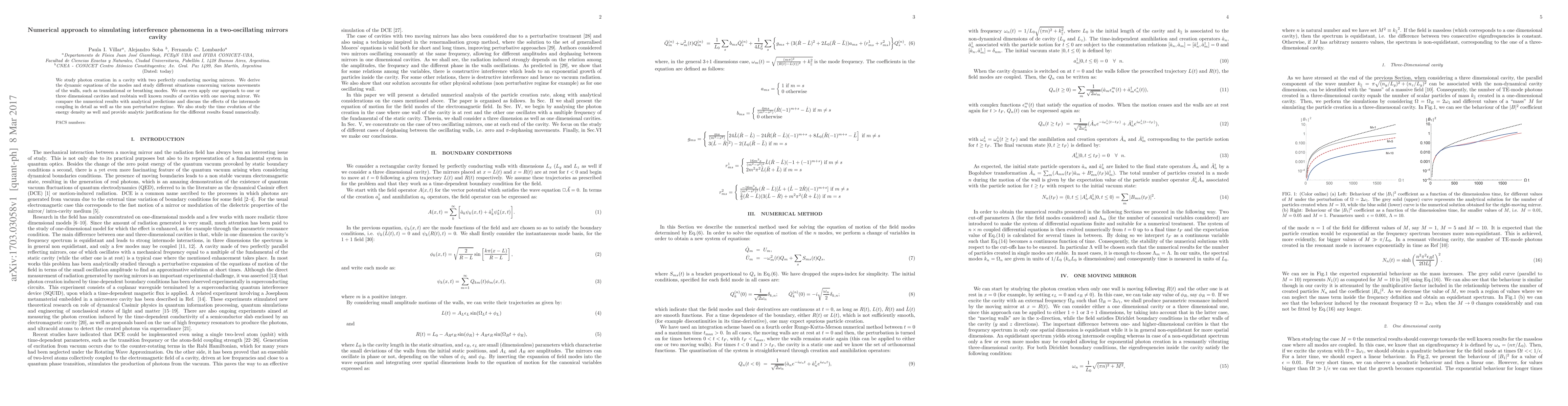 This paper develops a numerical method to simulate photon creation in cavities with two moving mirrors, analyzing various mirror movements and comparing results with analytical predictions. It explores intermode coupling effects and provides detailed justifications for the observed time evolution of energy density.