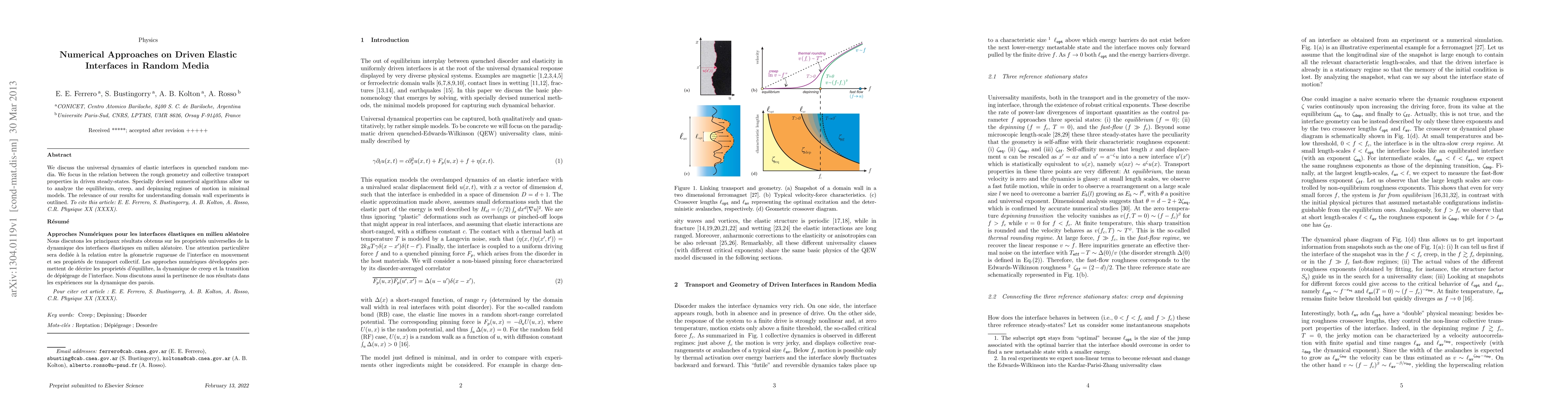 This paper explores numerical methods to study the dynamics of elastic interfaces in random media, analyzing the connection between interface roughness and transport properties in driven steady-states. It employs specialized algorithms to investigate equilibrium, creep, and depinning regimes, highlighting implications for domain wall experiments.