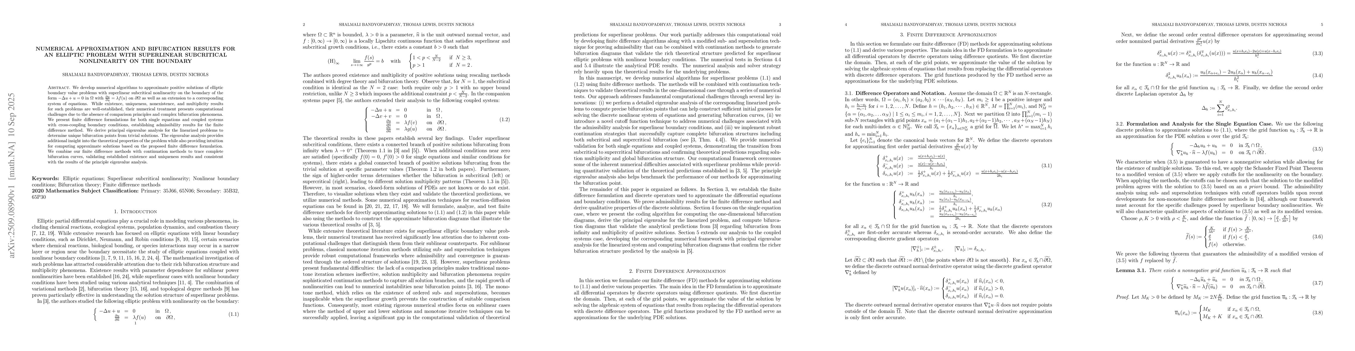 We develop numerical algorithms to approximate positive solutions of elliptic boundary value problems with superlinear subcritical nonlinearity on the boundary of the form $-\Delta u + u = 0$ in $\Omega$ with $\frac{\partial u}{\partial \eta} = \lambda f(u)$ on $\partial\Omega$ as well as an extension to a corresponding system of equations. While existence, uniqueness, nonexistence, and multiplicity results for such problems are well-established, their numerical treatment presents computational challenges due to the absence of comparison principles and complex bifurcation phenomena. We present finite difference formulations for both single equations and coupled systems with cross-coupling boundary conditions, establishing admissibility results for the finite difference method. We derive principal eigenvalue analysis for the linearized problems to determine unique bifurcation points from trivial solutions. The eigenvalue analysis provides additional insight into the theoretical properties of the problem while also providing intuition for computing approximate solutions based on the proposed finite difference formulation. We combine our finite difference methods with continuation methods to trace complete bifurcation curves, validating established existence and uniqueness results and consistent with the results of the principle eigenvalue analysis.