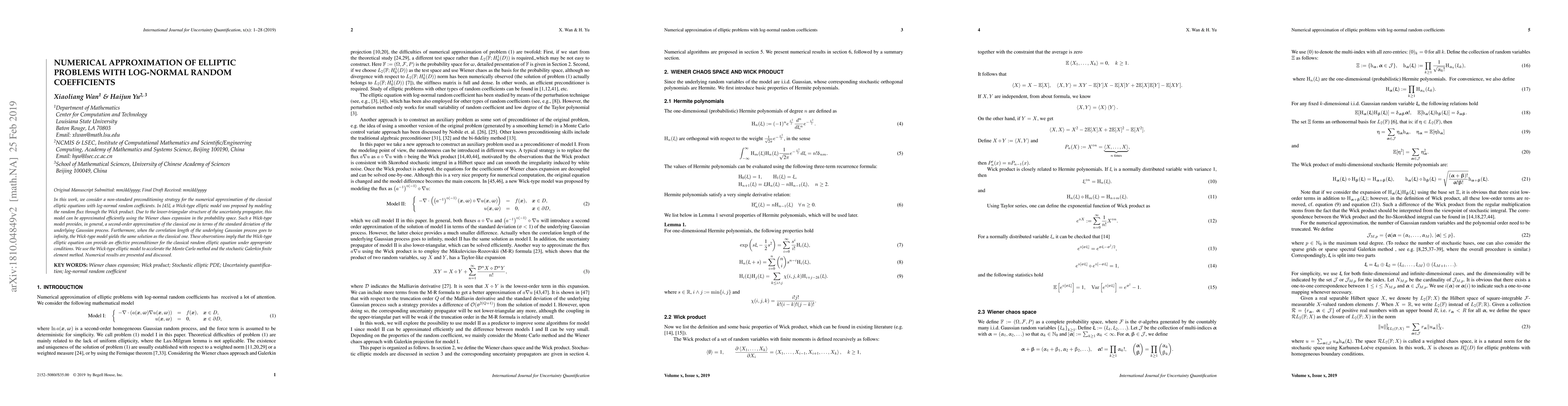 In this work, we consider a non-standard preconditioning strategy for the numerical approximation of the classical elliptic equations with log-normal random coefficients. In \cite{Wan_model}, a Wick-type elliptic model was proposed by modeling the random flux through the Wick product. Due to the lower-triangular structure of the uncertainty propagator, this model can be approximated efficiently using the Wiener chaos expansion in the probability space. Such a Wick-type model provides, in general, a second-order approximation of the classical one in terms of the standard deviation of the underlying Gaussian process. Furthermore, when the correlation length of the underlying Gaussian process goes to infinity, the Wick-type model yields the same solution as the classical one. These observations imply that the Wick-type elliptic equation can provide an effective preconditioner for the classical random elliptic equation under appropriate conditions. We use the Wick-type elliptic model to accelerate the Monte Carlo method and the stochastic Galerkin finite element method. Numerical results are presented and discussed.