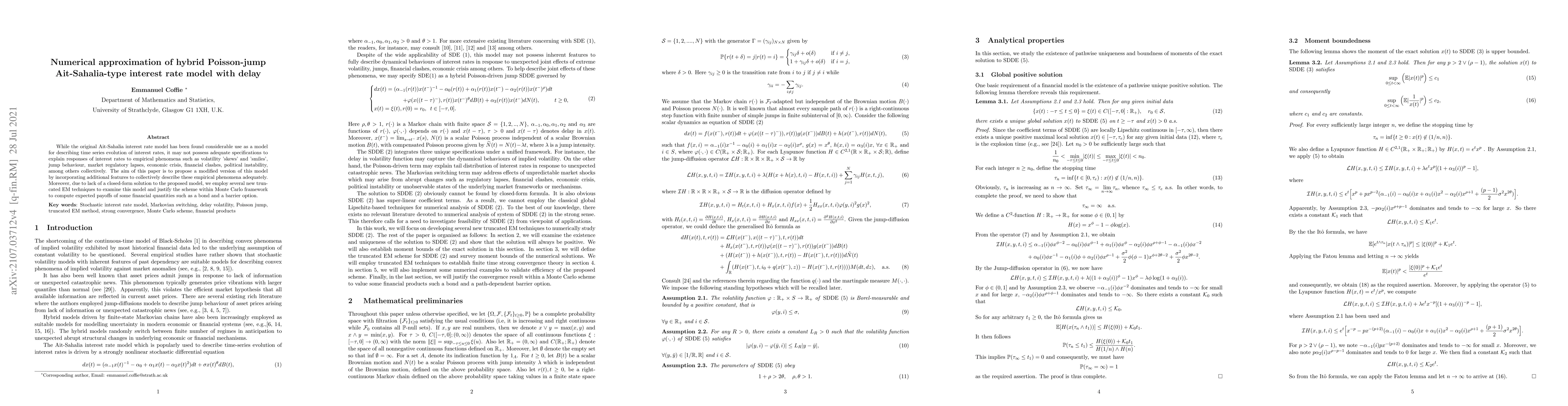 A research paper proposes a modified hybrid Poisson-jump interest rate model to better capture empirical phenomena such as volatility 'skews' and jump behaviour. It employs truncated EM techniques within the Monte Carlo framework to compute expected payoffs of financial quantities.