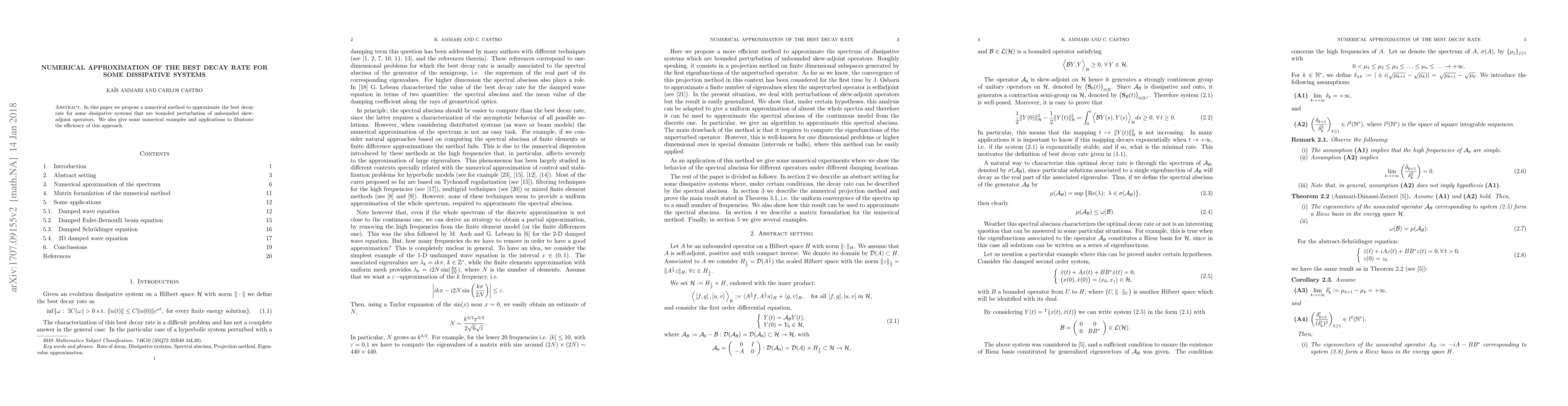 In this paper we propose a numerical method to approximate the best decay rate for some dissipative systems that are bounded perturbation of unbounded skew-adjoint operators. We also give some numerical examples and applications to illustrate the efficiency of this approach.