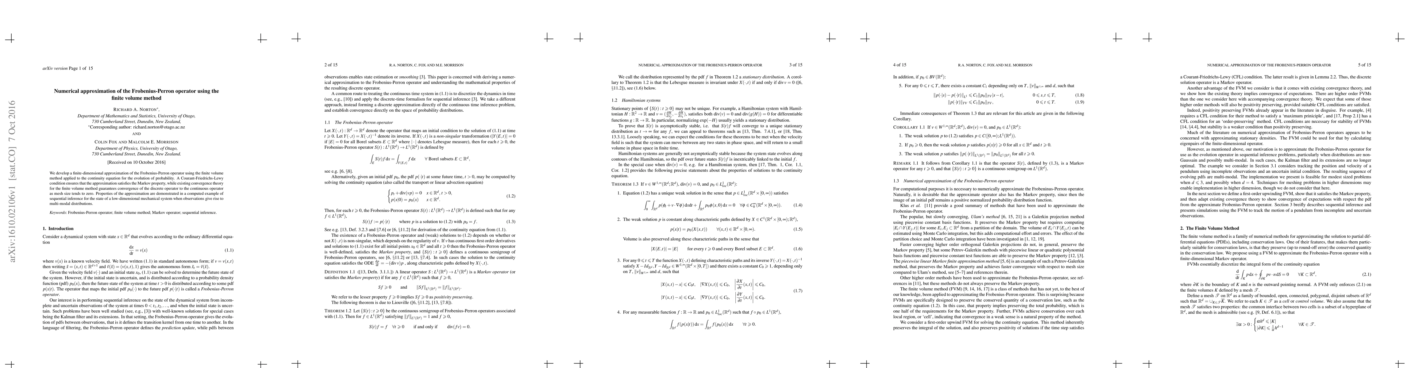 This paper develops a finite-dimensional approximation of the Frobenius-Perron operator using the finite volume method for probability evolution, ensuring Markov property adherence and convergence. An example demonstrates its application in sequential inference for a low-dimensional mechanical system.