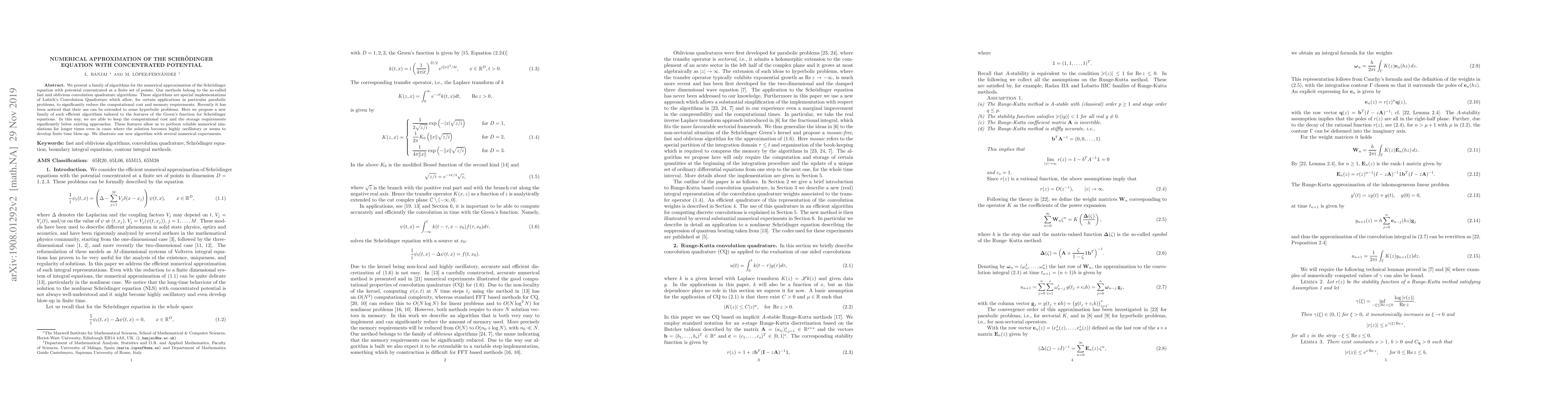 This paper introduces efficient algorithms for numerically approximating the Schrödinger equation with concentrated potentials, leveraging fast convolution quadrature methods to significantly reduce computational costs and memory usage. The new algorithms outperform existing approaches, enabling reliable simulations over longer times even under highly oscillatory conditions.
