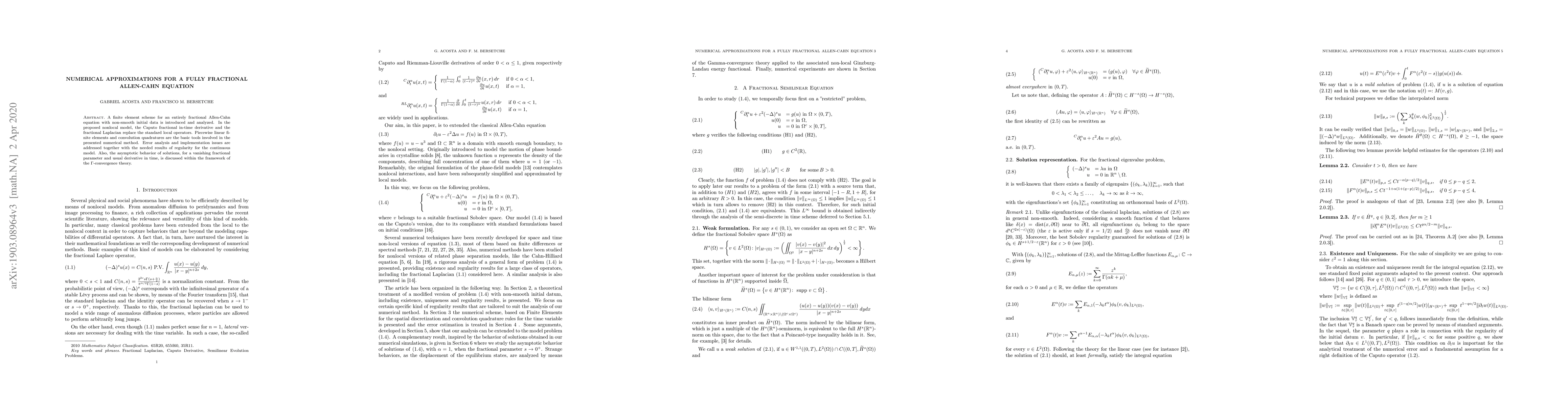 This paper introduces a finite element scheme for a fully fractional Allen-Cahn equation using Caputo fractional derivatives and the fractional Laplacian. The method employs piecewise linear finite elements and convolution quadratures, with error analysis and implementation considerations, alongside a discussion on the asymptotic behavior of solutions via Gamma-convergence theory.