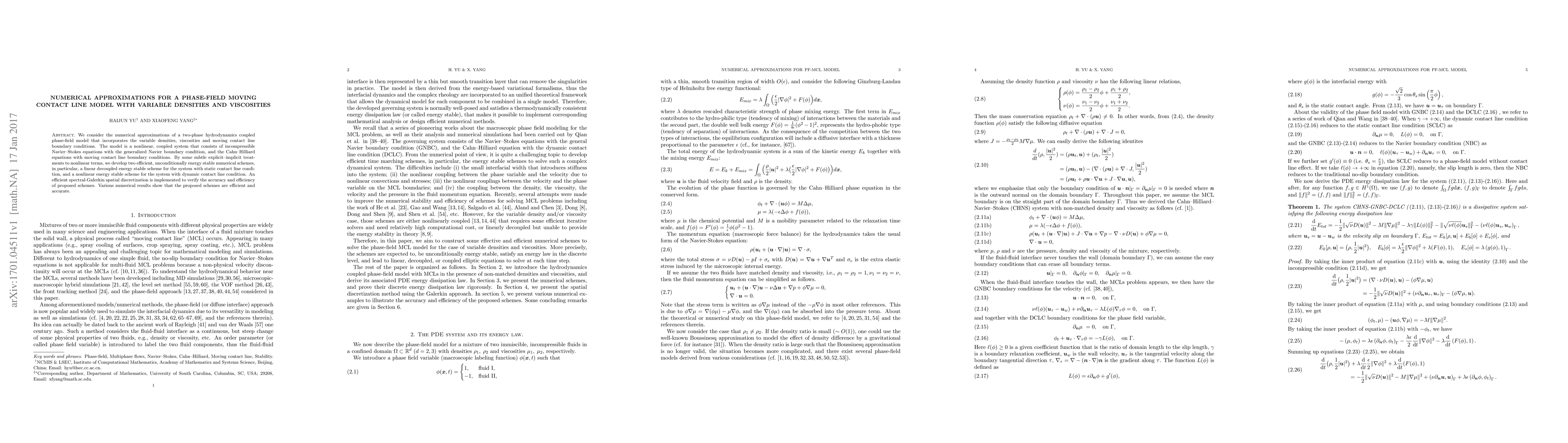This paper develops two efficient, unconditionally energy stable numerical schemes for a phase-field model of two-phase hydrodynamics with variable densities, viscosities, and moving contact line conditions. The schemes are validated through spectral-Galerkin spatial discretization and demonstrate accuracy and efficiency.