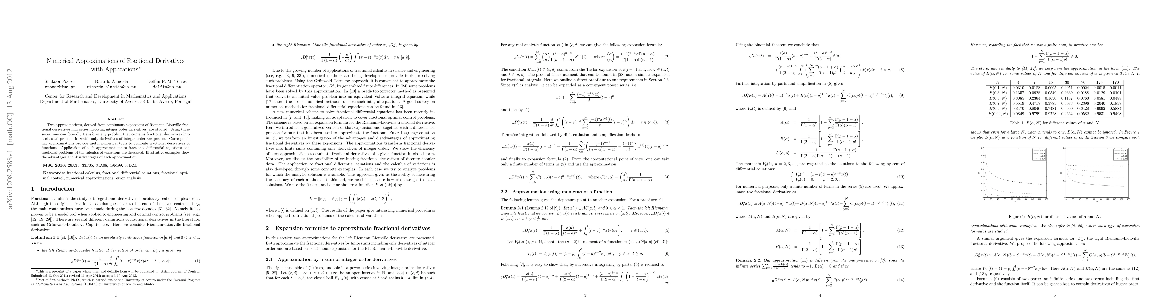 This paper studies two numerical approximations for Riemann-Liouville fractional derivatives, transforming fractional derivative problems into classical integer-order derivative problems. The approximations are applied to fractional differential equations and calculus of variations, with examples highlighting their benefits and limitations.
