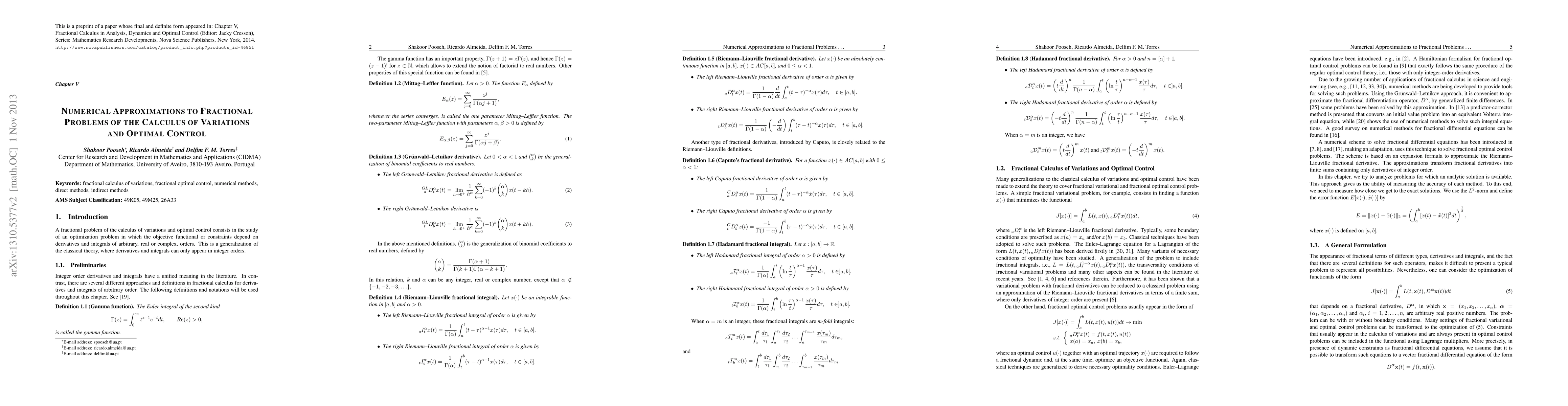 This paper explores numerical methods for solving fractional calculus of variations and optimal control problems, focusing on discretizing fractional terms using finite differences and transforming fractional derivatives into series involving integer-order derivatives. Both direct and indirect methods are discussed, with examples demonstrating their application and accuracy.