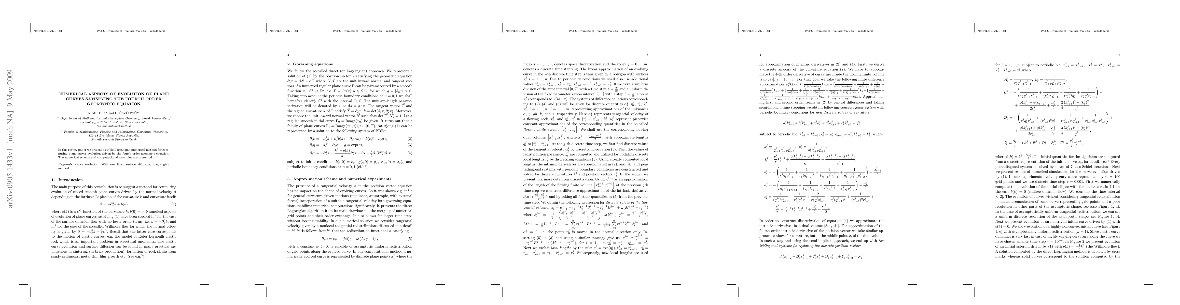 A numerical method for solving plane curves driven by a fourth-order geometric equation has been developed, enabling stable computation of curve evolution.