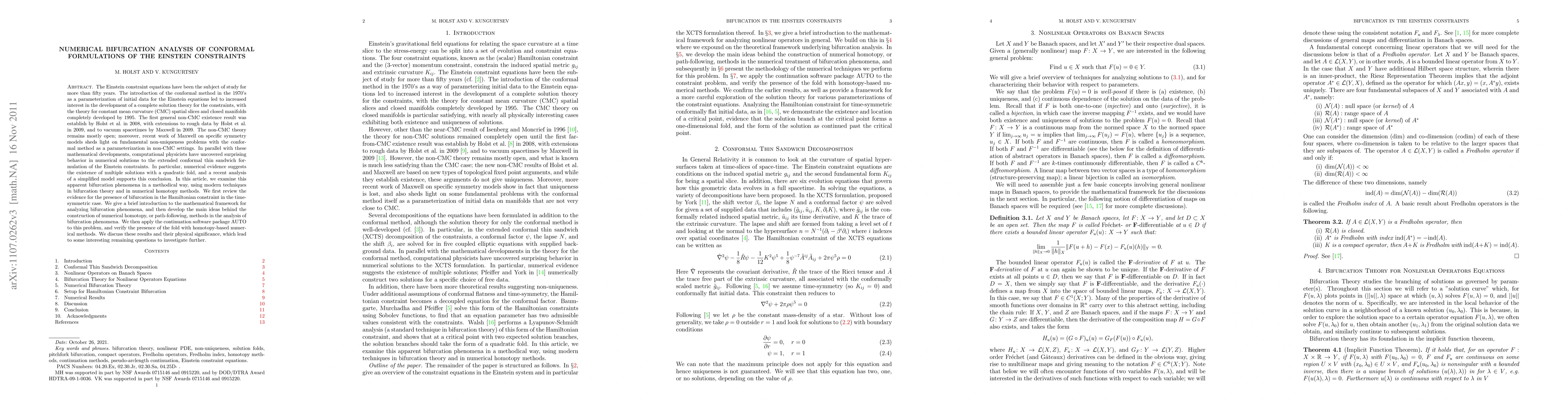 This paper investigates the bifurcation phenomena in the numerical solutions of the conformal formulations of the Einstein constraints, using modern bifurcation theory and numerical homotopy methods. It confirms the existence of multiple solutions through a quadratic fold, supported by computational evidence and verified with the AUTO continuation software.