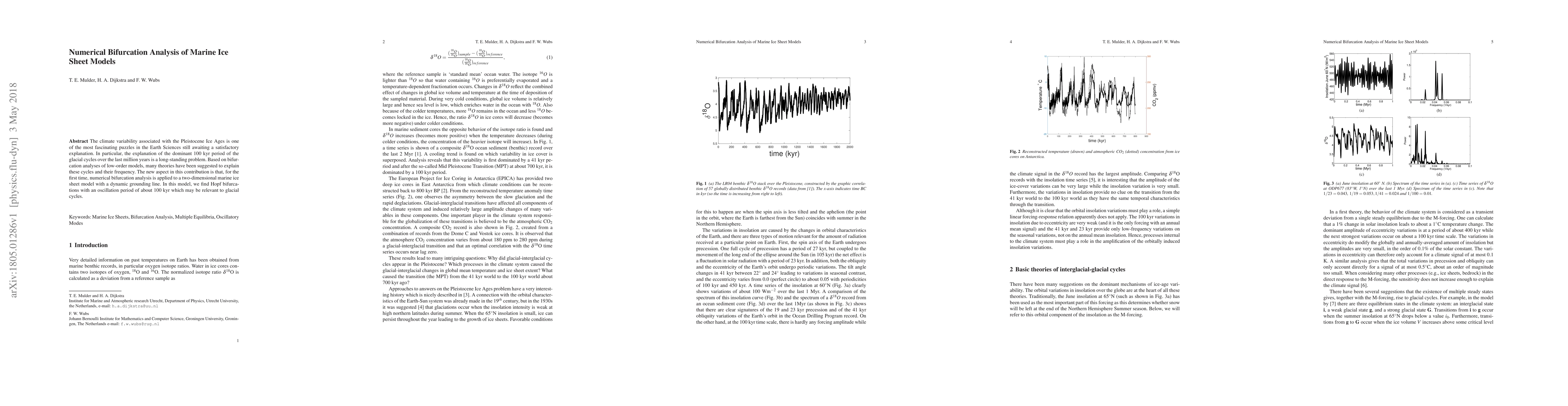 This research applies numerical bifurcation analysis to a two-dimensional marine ice sheet model with a dynamic grounding line, using pseudo-arclength continuation to trace solution branches and investigate stability.