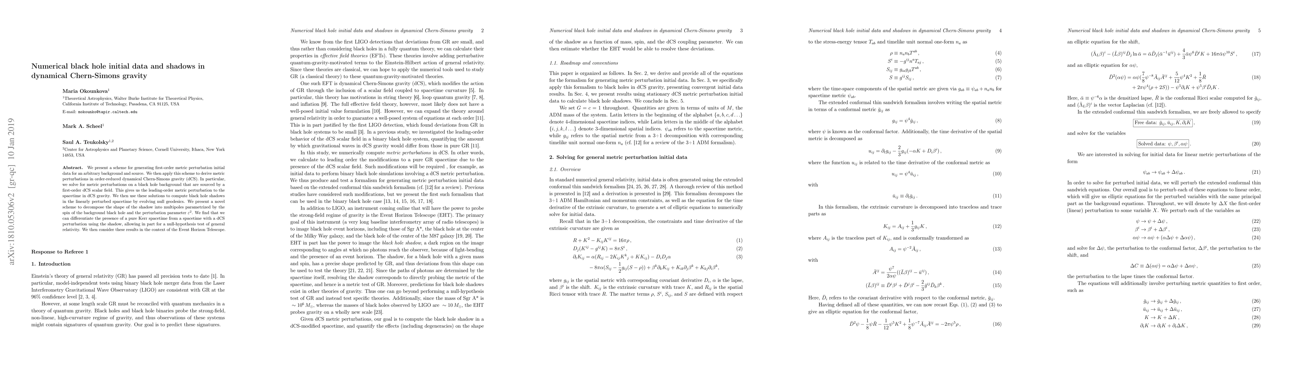 We present a scheme for generating first-order metric perturbation initial data for an arbitrary background and source. We then apply this scheme to derive metric perturbations in order-reduced dynamical Chern-Simons gravity (dCS). In particular, we solve for metric perturbations on a black hole background that are sourced by a first-order dCS scalar field. This gives us the leading-order metric perturbation to the spacetime in dCS gravity. We then use these solutions to compute black hole shadows in the linearly perturbed spacetime by evolving null geodesics. We present a novel scheme to decompose the shape of the shadow into multipoles parametrized by the spin of the background black hole and the perturbation parameter $\varepsilon^2$. We find that we can differentiate the presence of a pure Kerr spacetime from a spacetime with a dCS perturbation using the shadow, allowing in part for a null-hypothesis test of general relativity. We then consider these results in the context of the Event Horizon Telescope.