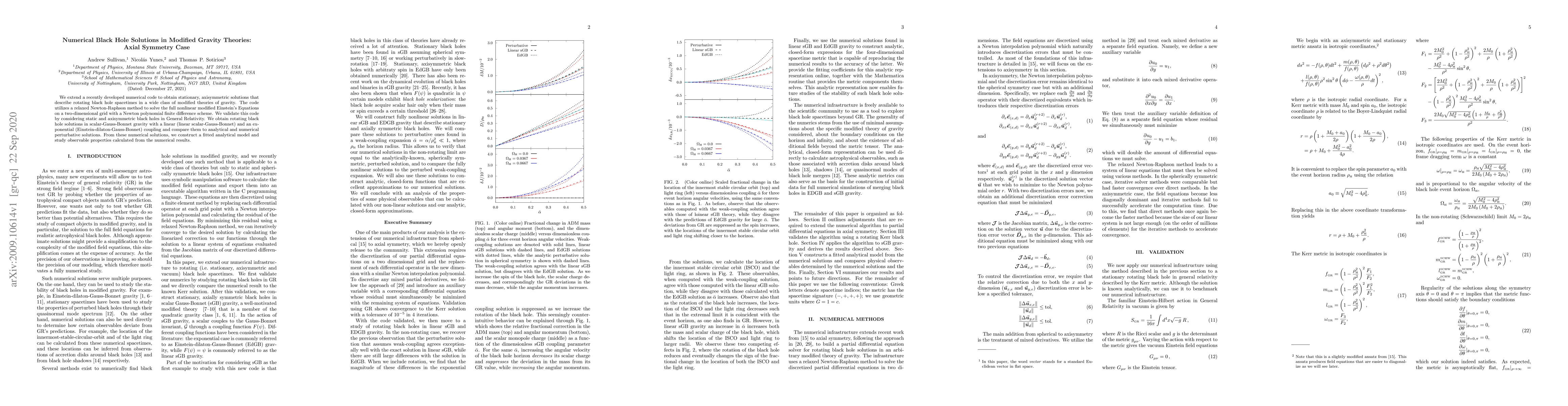 This paper develops a numerical code to solve for rotating, axisymmetric black holes in various modified gravity theories, employing a Newton-Raphson method and a finite difference scheme. The code is validated against General Relativity and used to derive solutions in scalar-Gauss-Bonnet gravity, providing a fitted analytical model for observable properties.