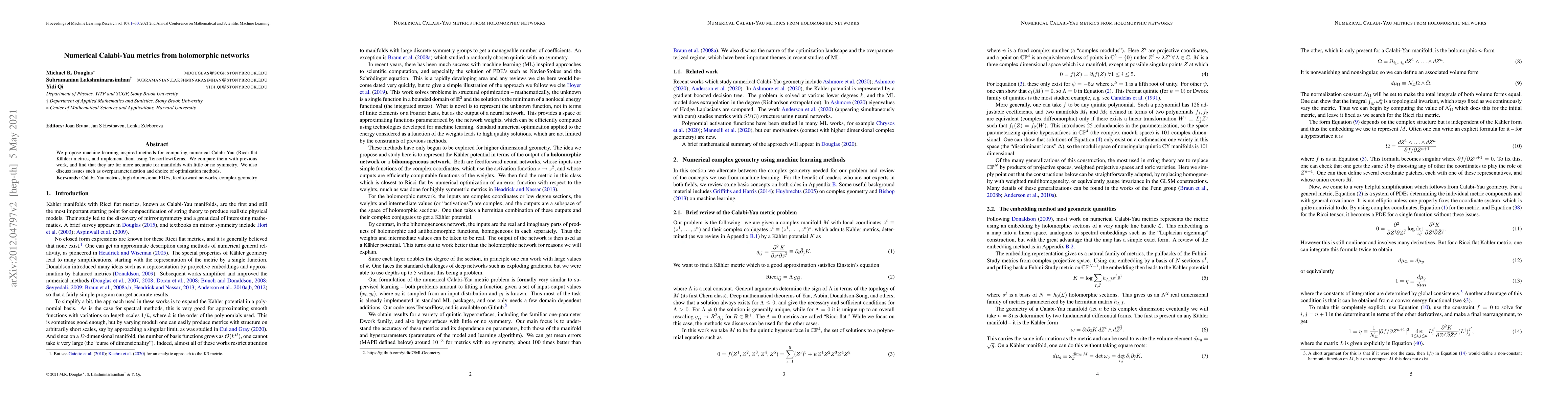 We propose machine learning inspired methods for computing numerical Calabi-Yau (Ricci flat K\"ahler) metrics, and implement them using Tensorflow/Keras. We compare them with previous work, and find that they are far more accurate for manifolds with little or no symmetry. We also discuss issues such as overparameterization and choice of optimization methods.