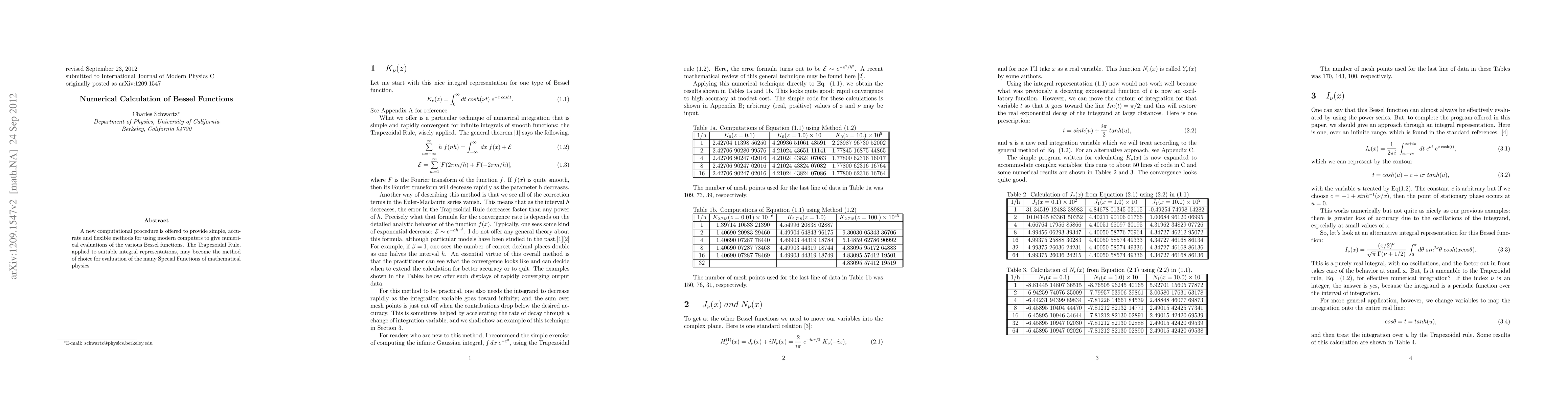 Summary: This paper introduces a new computational method for accurately evaluating Bessel functions using the Trapezoidal Rule applied to integral representations, aiming to provide a simple, flexible, and efficient approach for modern computer-based calculations in mathematical physics.