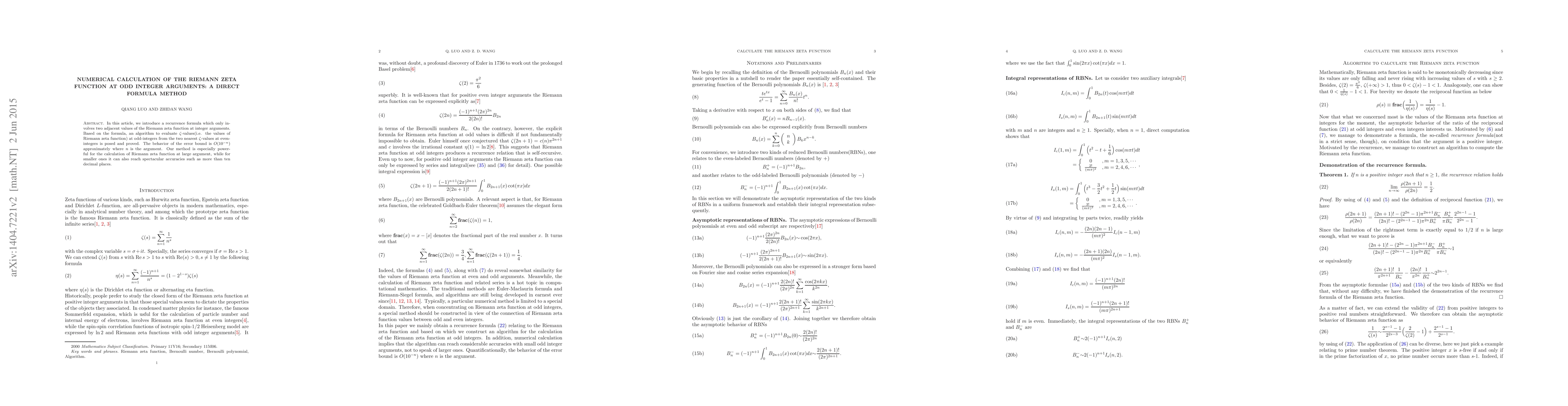 This paper proposes a recurrence formula to calculate values of the Riemann zeta function at odd integers directly using two adjacent even integer values, demonstrating error bounds of $O(10^{-n})$. It is particularly effective for large arguments while also providing high accuracy for smaller ones.