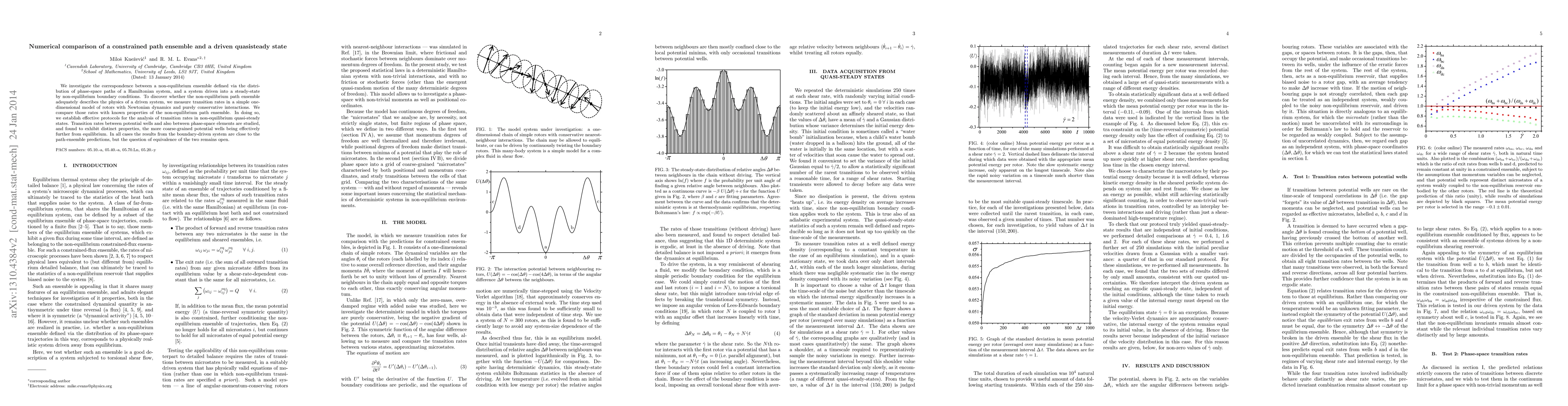 We investigate the correspondence between a non-equilibrium ensemble defined via the distribution of phase-space paths of a Hamiltonian system, and a system driven into a steady-state by non-equilibrium boundary conditions. To discover whether the non-equilibrium path ensemble adequately describes the physics of a driven system, we measure transition rates in a simple one-dimensional model of rotors with Newtonian dynamics and purely conservative interactions. We compare those rates with known properties of the non-equilibrium path ensemble. In doing so, we establish effective protocols for the analysis of transition rates in non-equilibrium quasi-steady states. Transition rates between potential wells and also between phase-space elements are studied, and found to exhibit distinct properties, the more coarse-grained potential wells being effectively further from equilibrium. In all cases the results from the boundary-driven system are close to the path-ensemble predictions, but the question of equivalence of the two remains open.