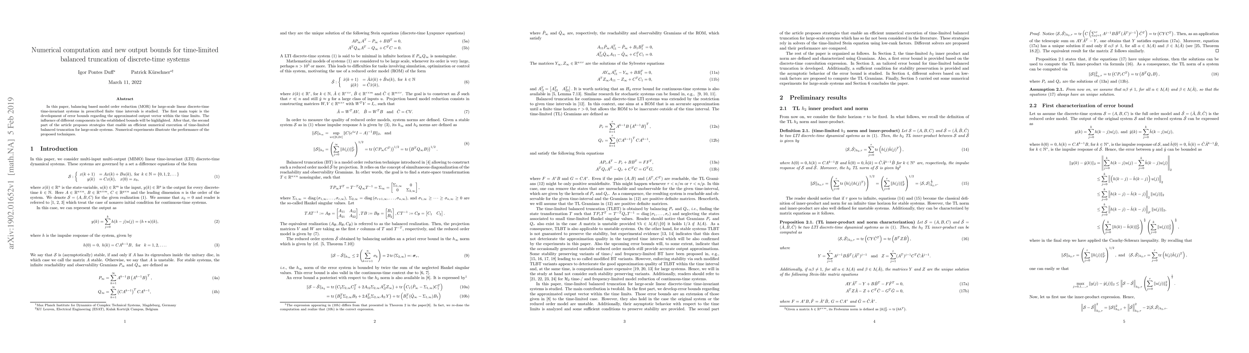 This paper develops error bounds for model order reduction in large-scale discrete-time systems, focusing on time-limited balanced truncation. It also proposes efficient numerical strategies for implementing these techniques, validated through numerical experiments.