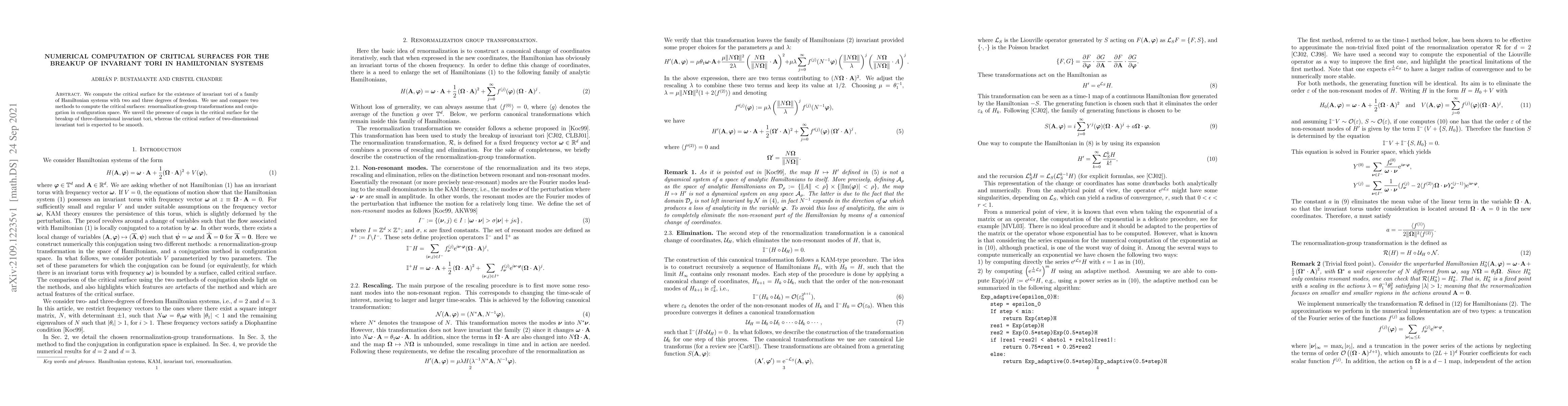 This paper computes critical surfaces for invariant tori in Hamiltonian systems using renormalization-group transformations and configuration space conjugation. It reveals cusps in the critical surface for the breakup of three-dimensional tori, while predicting a smooth surface for two-dimensional tori.