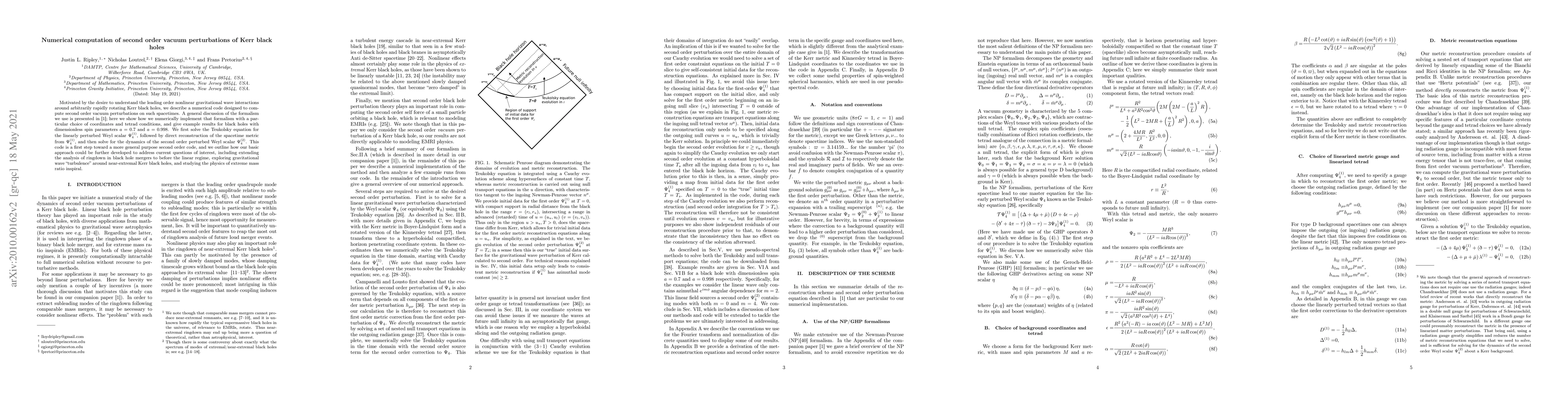 Researchers developed a numerical method to compute second-order vacuum perturbations of Kerr black holes, enabling analysis of nonlinear gravitational wave interactions around rapidly rotating black holes.