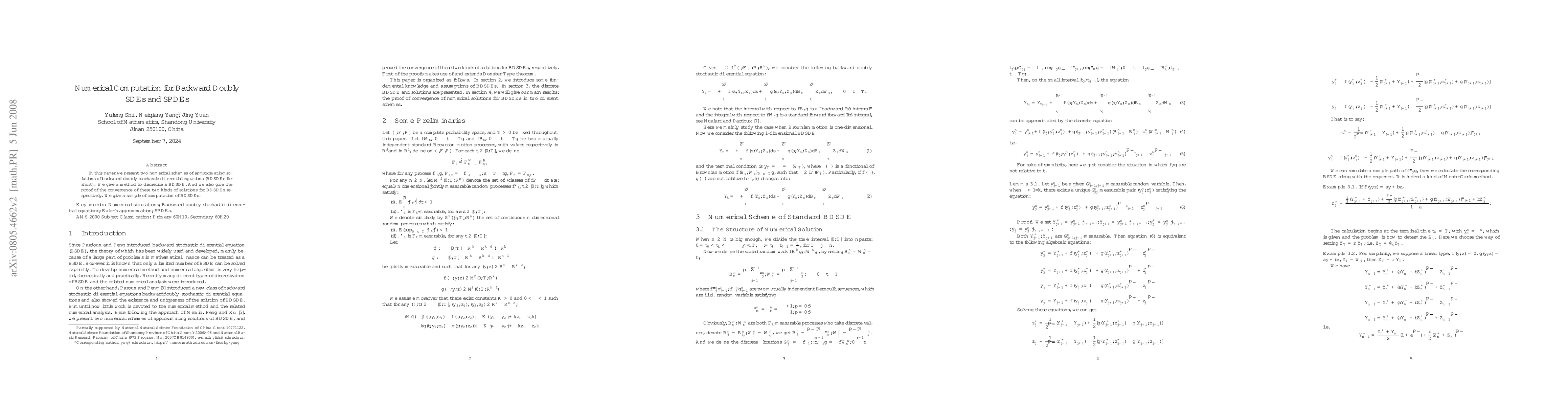 This paper presents numerical schemes for approximating solutions of backward doubly stochastic differential equations (BDSDEs) and provides convergence proofs and sample computations.