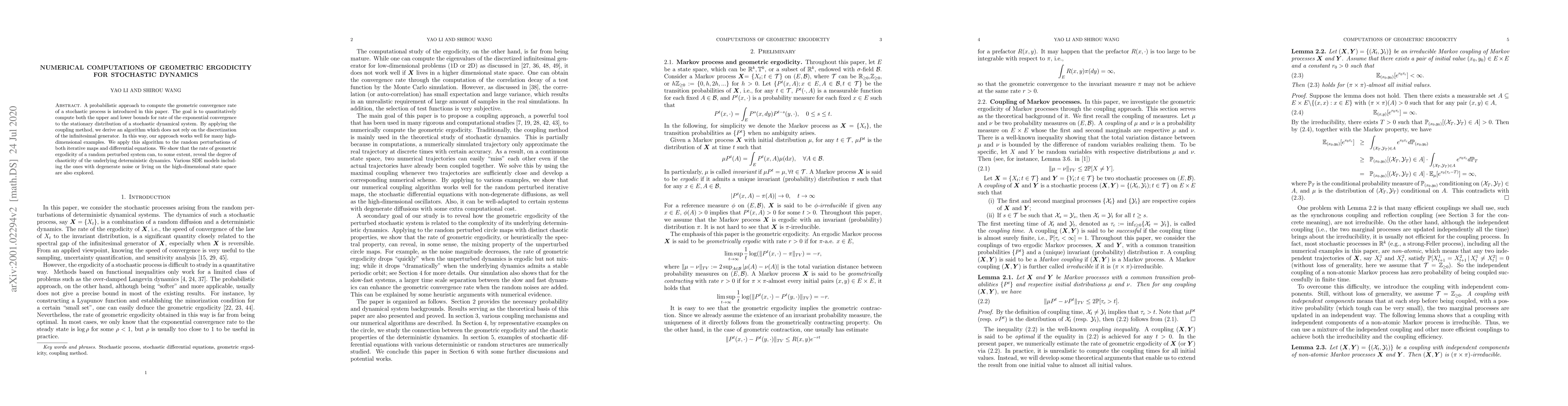 A probabilistic approach of computing geometric rate of convergence of stochastic processes is introduced in this paper. The goal is to quantitatively compute both upper and lower bounds of the exponential rate of convergence to the invariant probability measure of a stochastic process. By applying the coupling method, we derive an algorithm which does not need to discretize the state space. In this way, our approach works well for many high-dimensional examples. We apply this algorithm to both random perturbed iterative mappings and stochastic differential equations. We show that the rate of geometric ergodicity of the random perturbed system can, to some extent, reveal the chaotic properties of the unperturbed deterministic one. Various SDE models including those with degenerate noise or high-dimensional state space are also explored.
