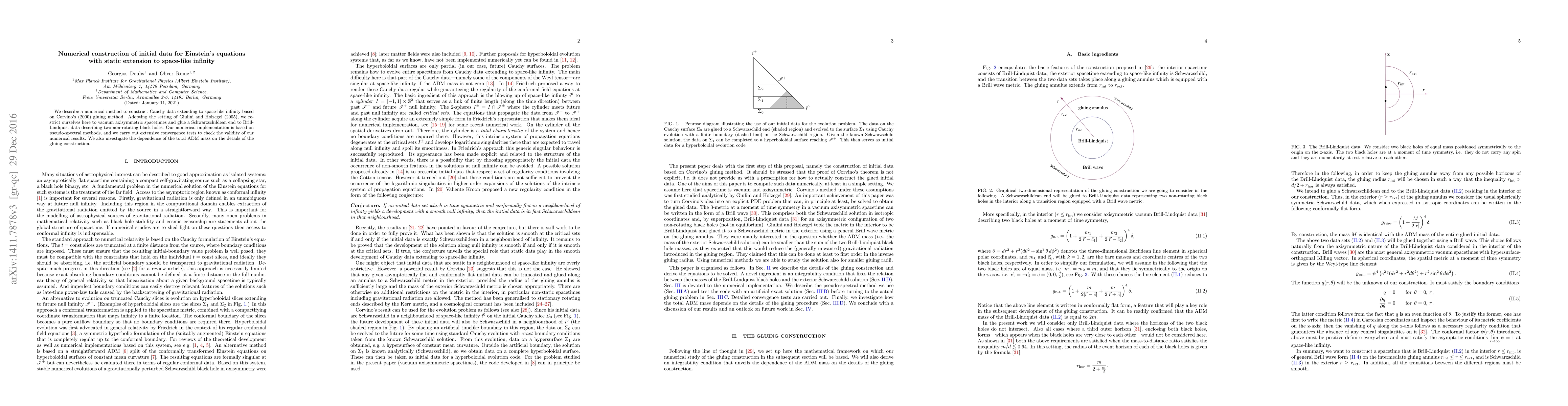A numerical method is developed to create initial data for Einstein's equations that extends to space-like infinity, allowing the simulation of black holes in a vacuum. The method uses pseudo-spectral methods and converges well, with the total ADM mass showing dependence on the gluing construction details.