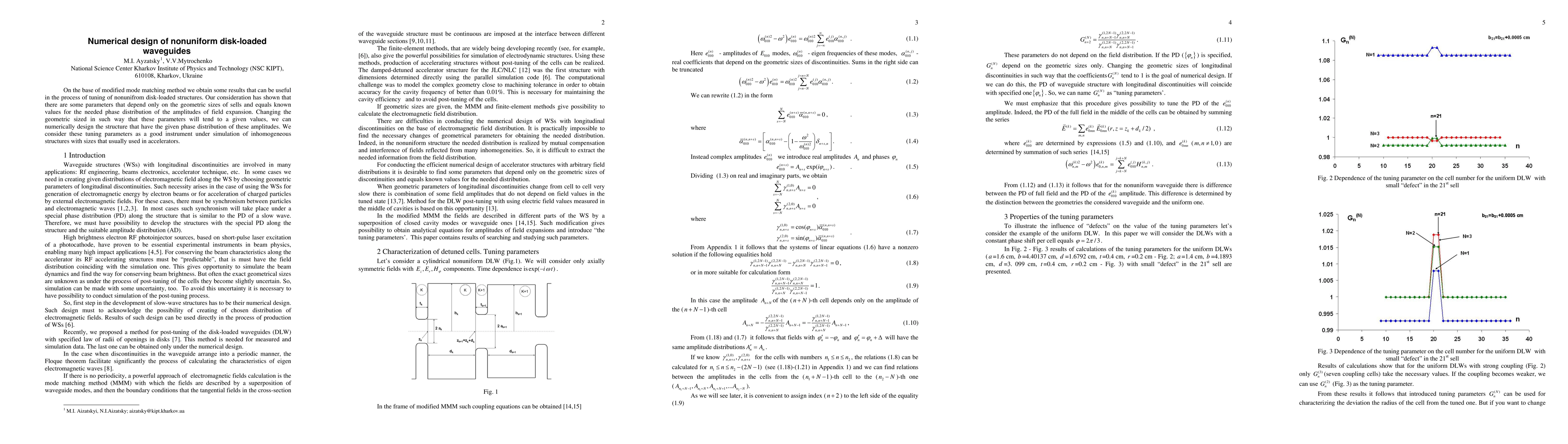 On the base of modified mode matching method we obtain some results that can be useful in the process of tuning of nonunifrom disk-loaded structures. Our consideration has shown that there are some parameters that depend only on the geometric sizes of sells and equals known values for the needed phase distribution of the amplitudes of field expansion. Changing the geometric sized in such way that these parameters will tend to a given values, we can numerically design the structure that have the given phase distribution of these amplitudes. We consider these tuning parameters as a good instrument under simulation of inhomogeneous structures with sizes that usually used in accelerators.