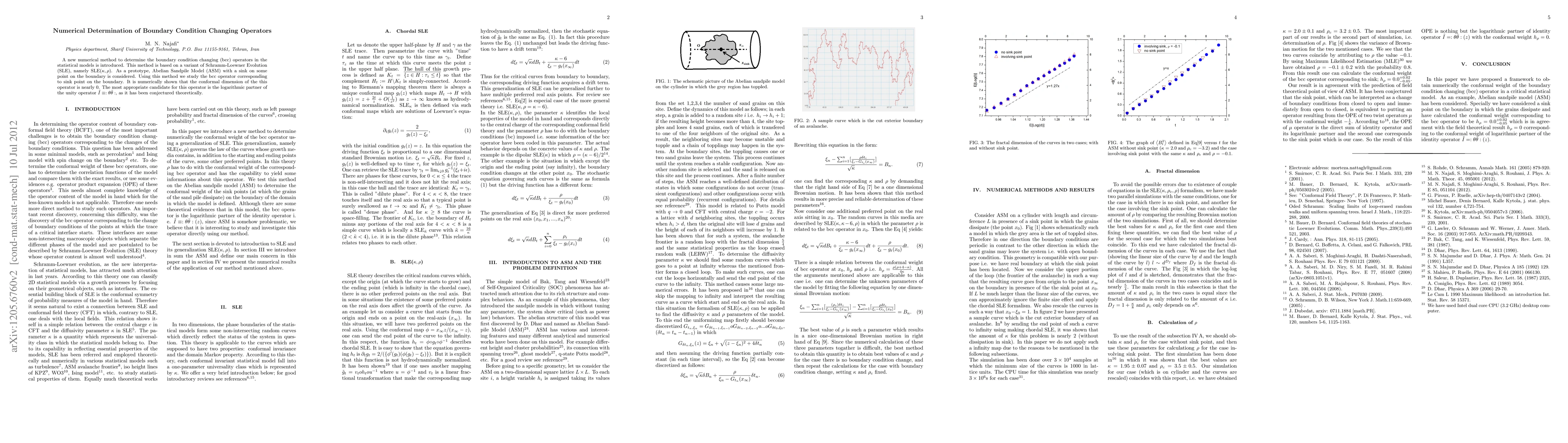 A new numerical method to determine the boundary condition changing (bcc) operators in the statistical models is introduced. This method is based on a variant of Schramm-Loewner Evolution (SLE), namely SLE(\kappa; \rho). As a prototype, Abelian Sandpile Model (ASM) with a sink on some point on the boundary is considered. Using this method we study the bcc operator corresponding to sink. It is numerically shown that the conformal dimension of the this operator is nearly 0. The most suitable candidate for this operator is the logarithmic partner of the unity operator, as it has been conjectured theoretically.