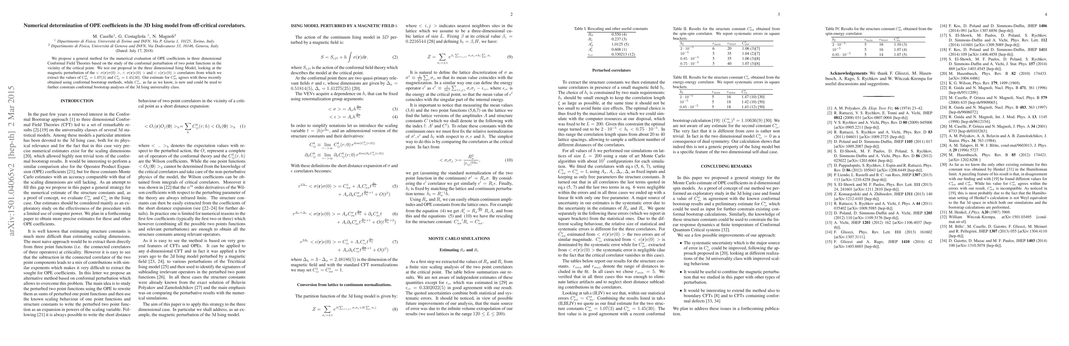 This paper presents a numerical method for determining OPE coefficients in 3D Conformal Field Theories by analyzing off-critical correlators near the critical point. The method is tested in the 3D Ising Model, yielding new values for $C^{\epsilon}_{\epsilon\epsilon}$ and confirming existing estimates for $C^{\sigma}_{\sigma\epsilon}$.