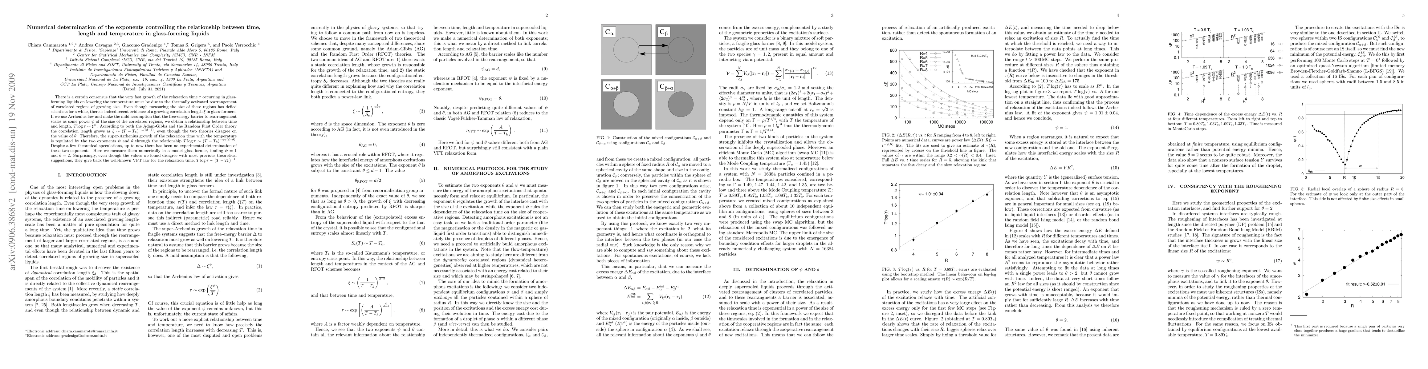 This paper numerically determines the exponents $\psi$ and $\theta$ that govern the relationship between time, length, and temperature in glass-forming liquids, finding $\psi=1$ and $\theta=2$, which surprisingly validate the well-known VFT law despite differing from most theoretical predictions.
