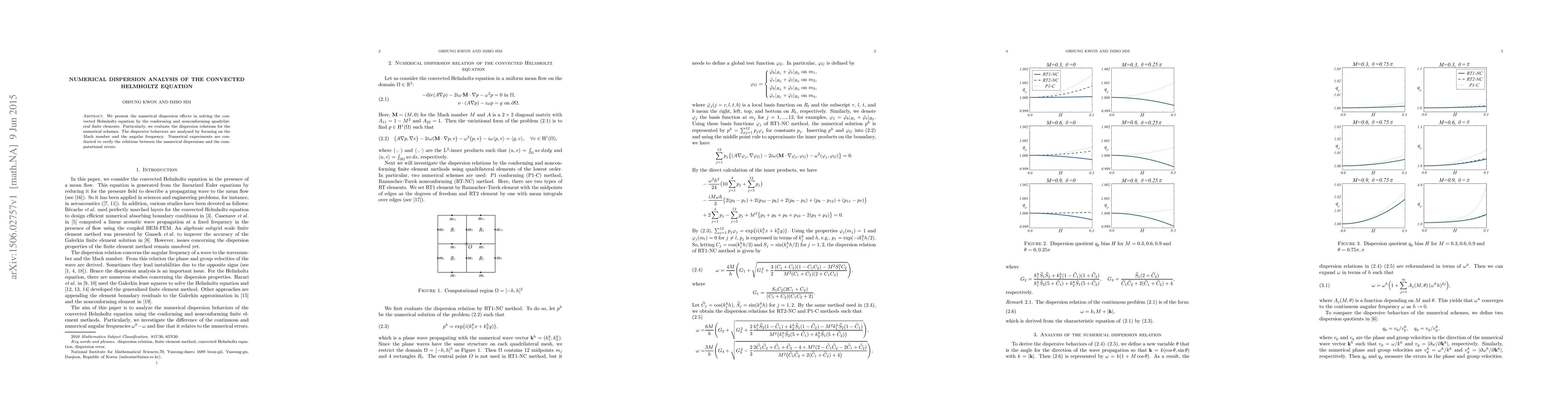 This paper investigates numerical dispersion effects in solving the convected Helmholtz equation using conforming and nonconforming quadrilateral finite elements. It evaluates dispersion relations and analyzes dispersive behaviors concerning Mach number and angular frequency, validated through numerical experiments.