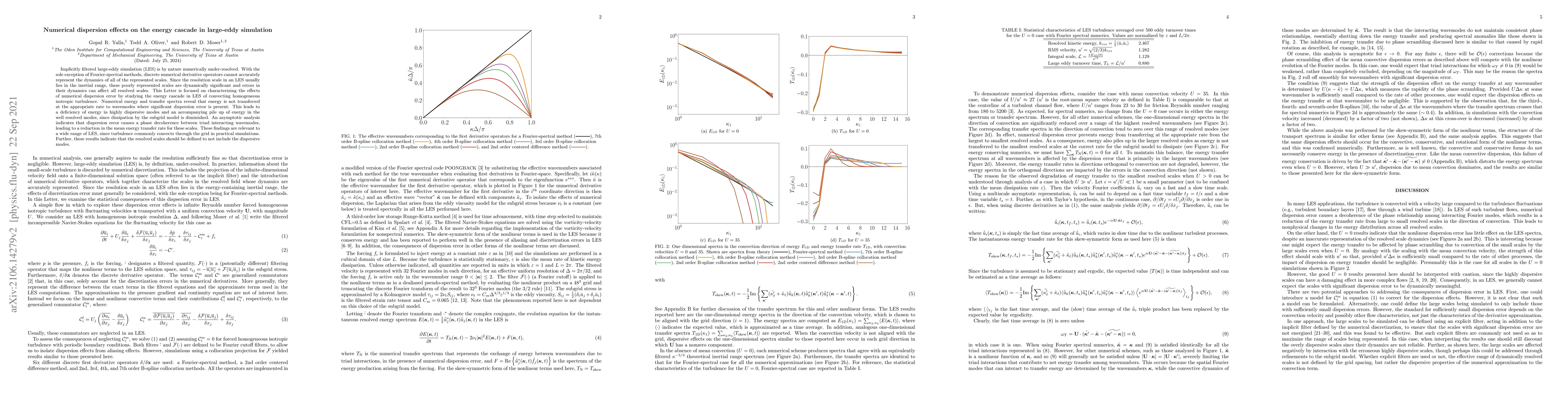 This paper investigates how numerical dispersion errors in large-eddy simulations affect the energy cascade in convecting homogeneous isotropic turbulence. It finds that dispersion errors lead to a reduced energy transfer rate and an imbalance in energy distribution among wavemodes, emphasizing the need to exclude dispersive modes from resolved scales in practical simulations.