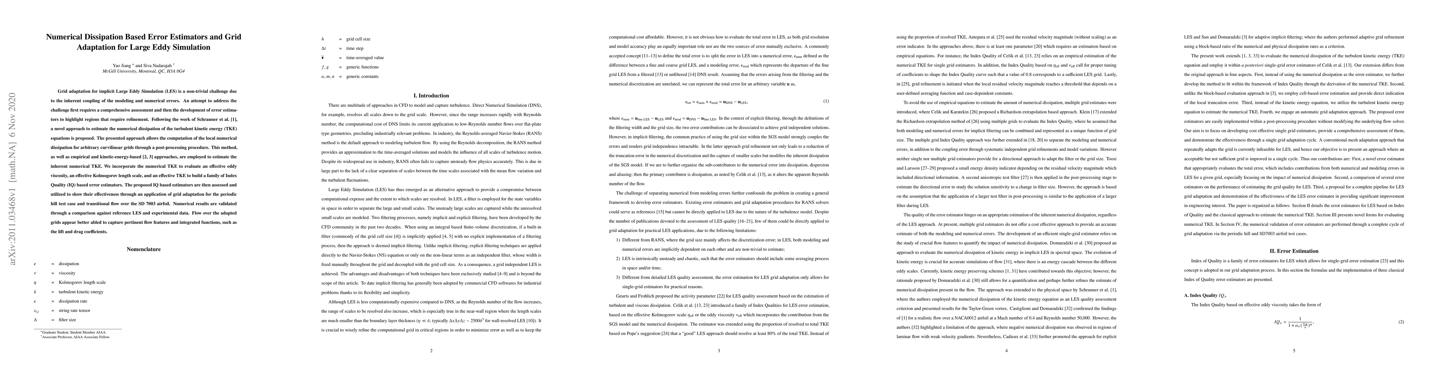 This paper proposes novel error estimators based on numerical dissipation for implicit Large Eddy Simulation (LES) to guide grid adaptation. The approach estimates local numerical dissipation for turbulent kinetic energy, leading to effective eddy viscosity and improved grid refinement, validated against reference LES and experimental data.