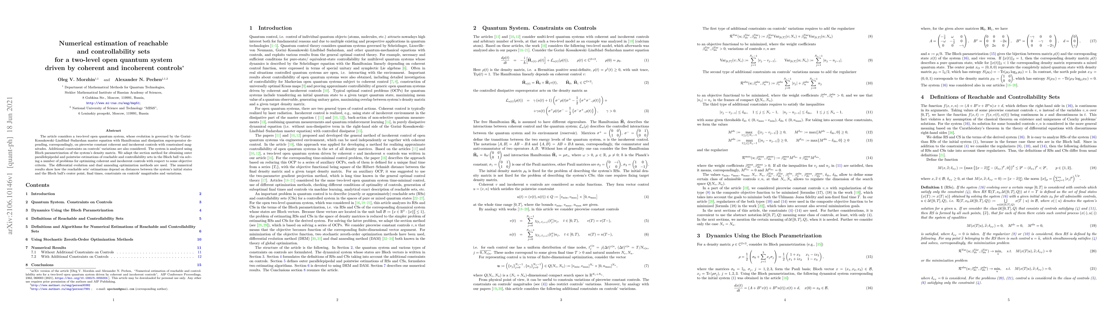 This paper numerically estimates reachable and controllability sets for a two-level open quantum system under coherent and incoherent controls, using Bloch parametrization and optimization methods. The study reveals the impact of initial states, final times, and control constraints on these sets.
