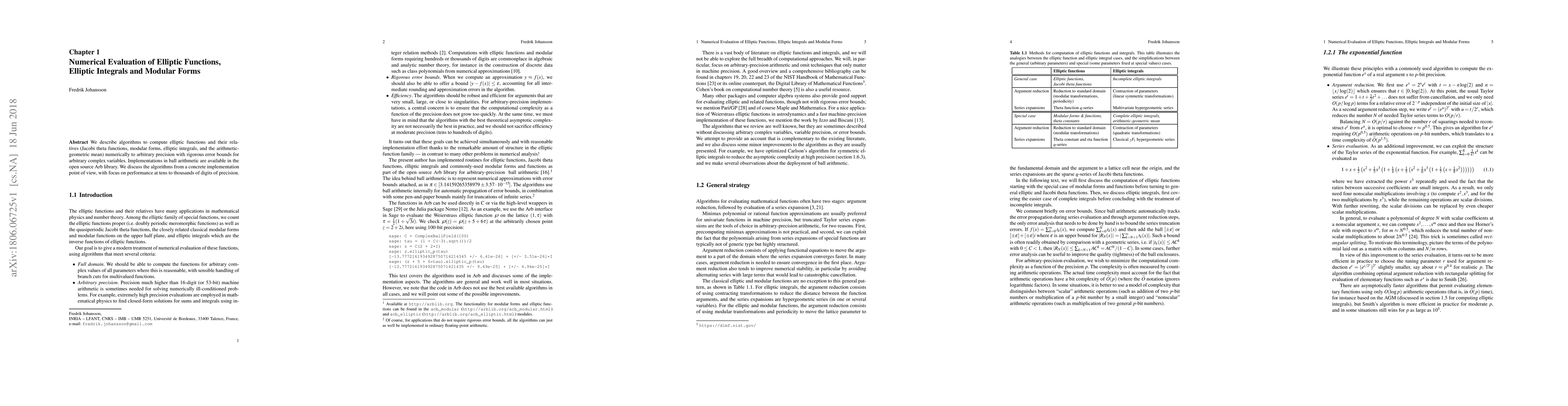 This paper presents algorithms for computing elliptic functions, Jacobi theta functions, modular forms, elliptic integrals, and the arithmetic-geometric mean to arbitrary precision, ensuring rigorous error bounds. The methods are implemented in the Arb library, emphasizing performance for high-digit precision calculations.
