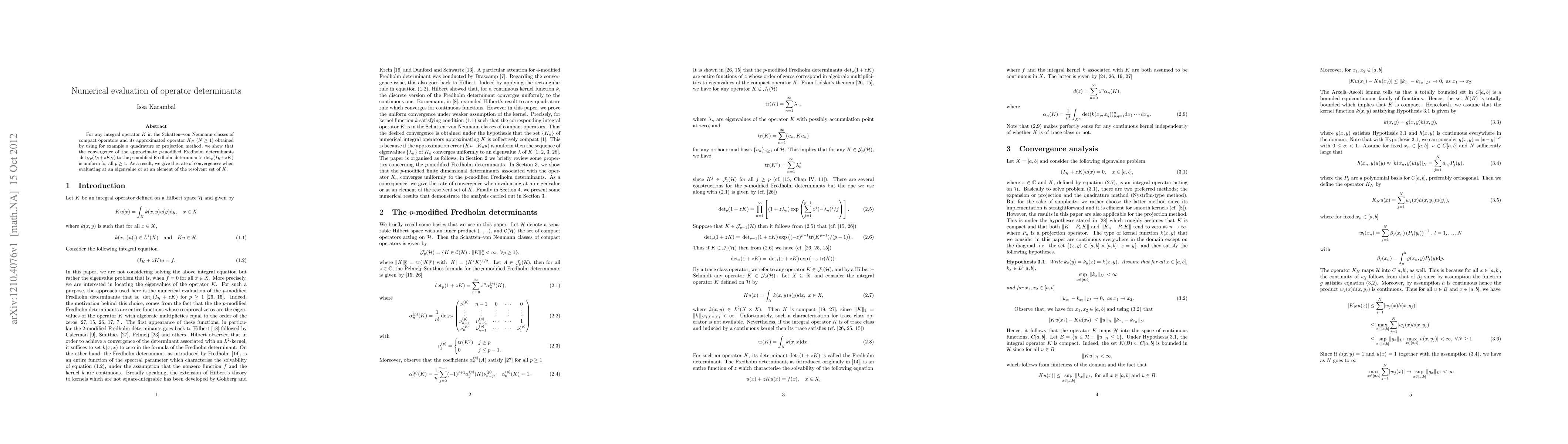 For any integral operator $K$ in the Schatten--von Neumann classes of compact operators and its approximated operator $K_N\sim(N\ge1)$ obtained by using for example a quadrature or projection method, we show that the convergence of the approximate $p$-modified Fredholm determinants $\sideset{}{_{Np}}\det(I_N+zK_N)$ to the $p$-modified Fredholm determinants $\sideset{}{_p}\det(I_\mathcal{H}+zK)$ is uniform for all $p\ge1$. As a result, we give the rate of convergences when evaluating at an eigenvalue or at an element of the resolvent set of $K$.